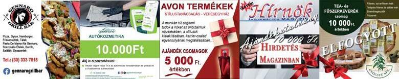 HIRDETÉSFELVÉTEL: 06-70-417-9952; 06-28-540-160; 06-20-9359-952; Hírnök Információs Központ Kiemelt területeink