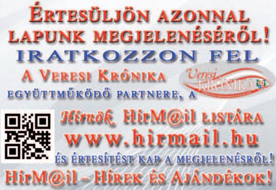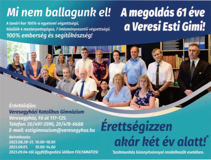27 2023. szeptember Hirdessen a Veresi Krónikában VERESEGYHÁZ VEZETŐ LAPJÁBAN! Velünk sikeres lesz! 8000 PÉLDÁNY, KEDVEZŐ ÁR Bővebb információ: veresikronika@veresegyhaz.hu • 30 9304 831