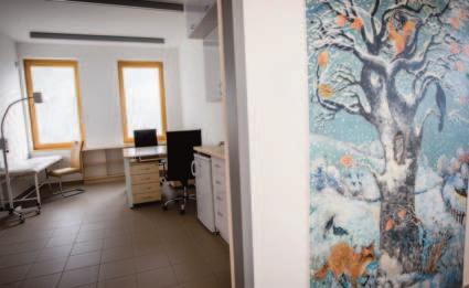 Az egészséges rendelés a másik szárnyban kapott helyet, itt a vizsgáló mellett egy multifunkcionális helyiség is helyet kapott az orvosi programban leírt prevenciós és rehabilitációs programokhoz.