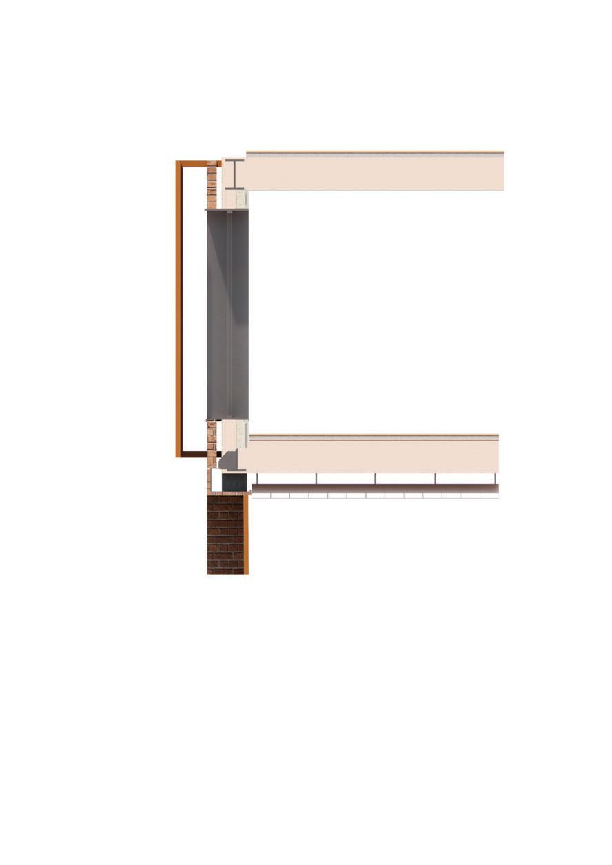This method of fixating the shading device does not require the structural support to extend into the envelope. As it is fixated into the brick using structural bolts. However this iteration requires the shading device to be smaller and lighter in weight. Otherwise this technique would not be stable enough to support a larger panel.