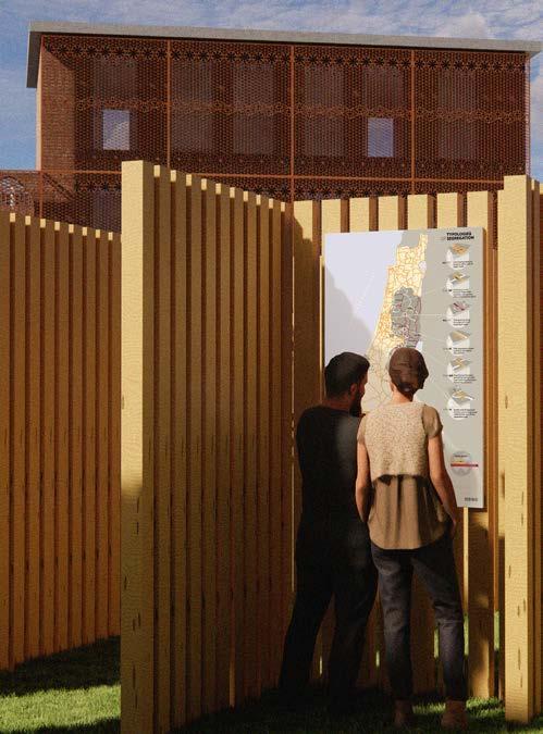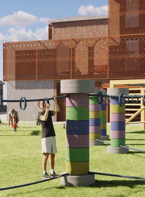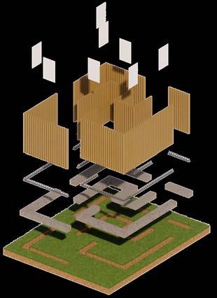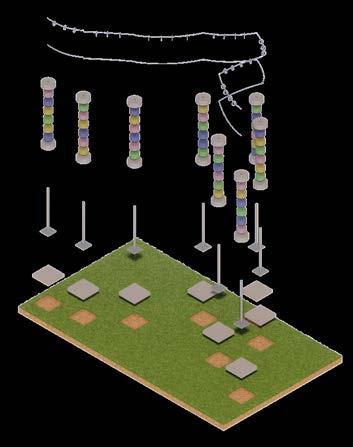 Stage 05&07: This page demonstrates the construction process of the pavilions as well as architectural renders of the landscape in use. 24