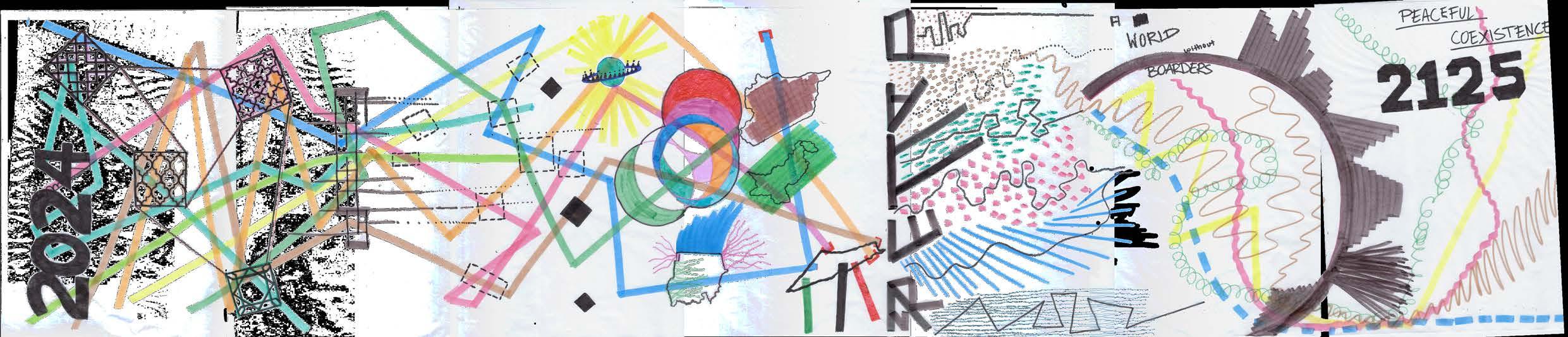 The final section aims to show what I imagine to world to be like in 2025. The dark semi circle shows a great wall of change that needs to be overcome, with the different types of lines demonstrating that it is difficult but not impossible. The very end shows represents liberation, in form of a world without boarders. I believe that we are too alike to create differences based on the place you were born in, do we not all have a right to a better life away from danger?