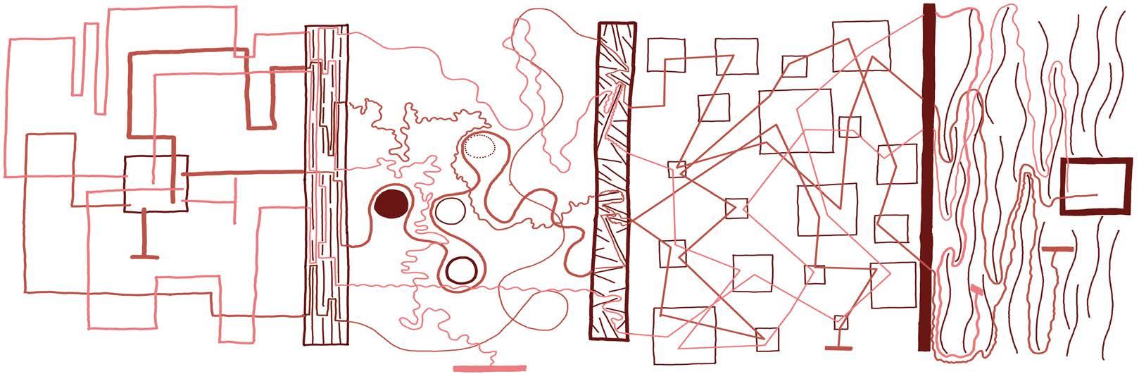 This segment aims represent liberation and stabilisation of the countries where the highest number of the displaced population originates from. The red endings show potential users of my building returning home. Also, imposing how today hosting countries could potentially turn into countries being fled, as natural disasters and political instability is unpredictable.
