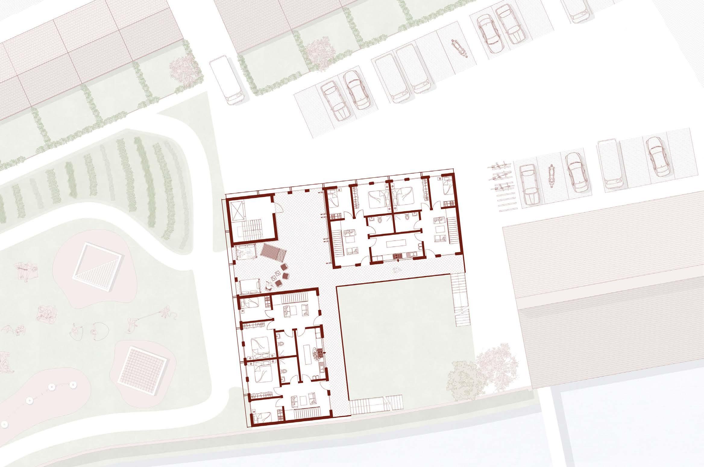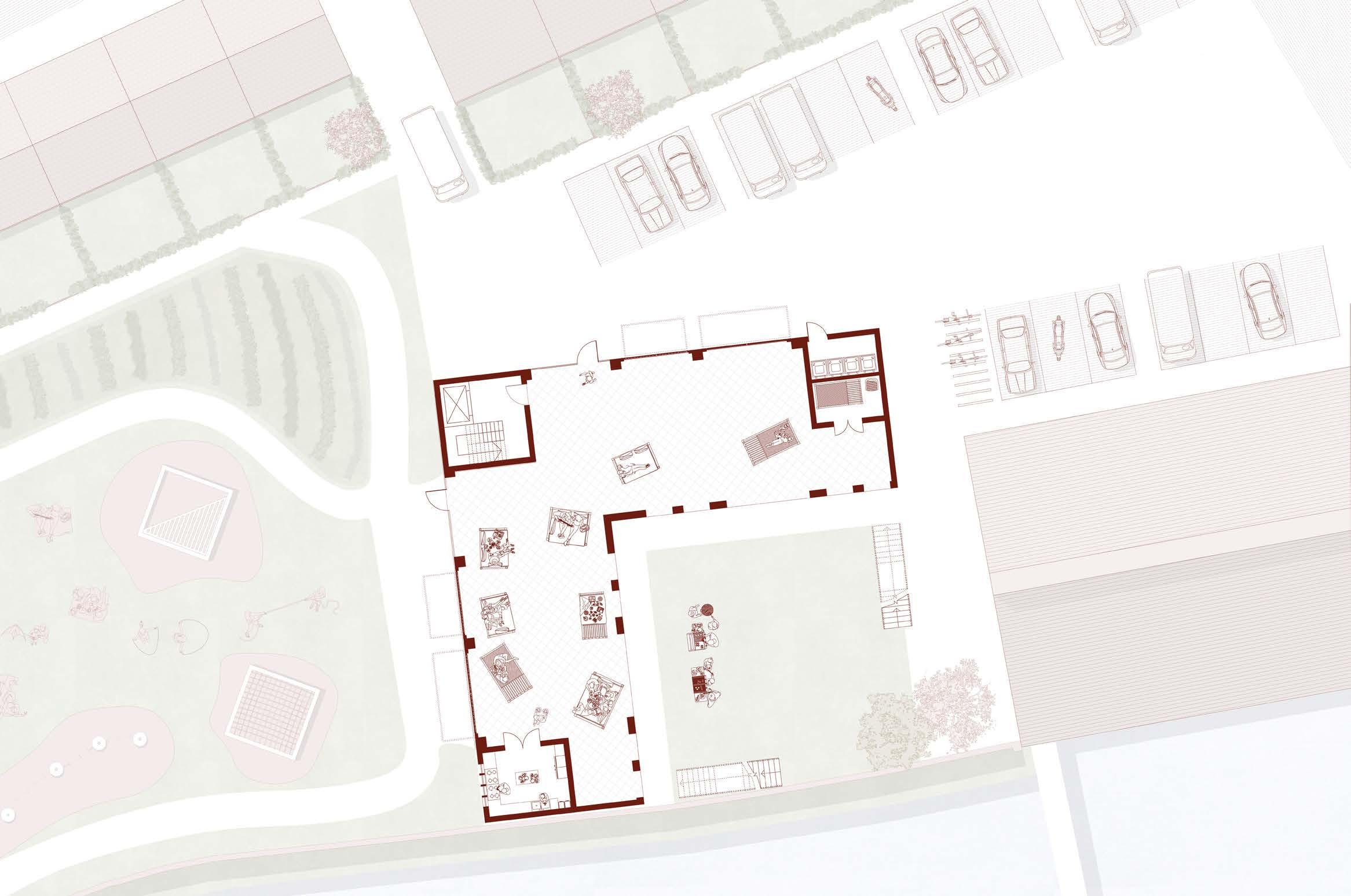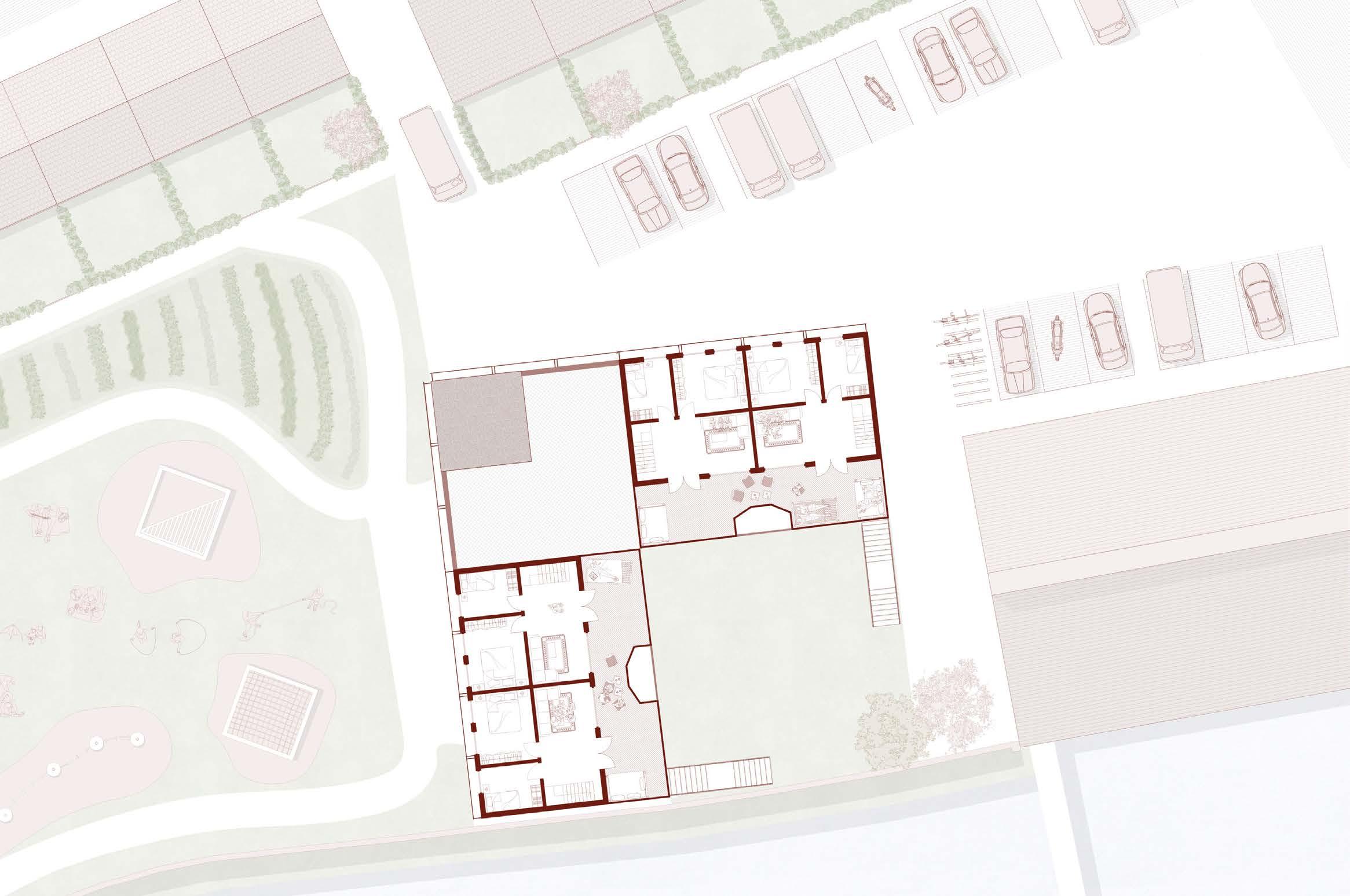 Community living ensures that refugees have a support system around them as mental health especially can be very challenging. By adding a landscape and large windows I can create a strong visual connection to the outside. Paying special consideration when choosing materials and