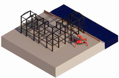Due to access issues to the site, a spider crane is used to lift the structural elements into place. The structure is erected and fixated using structural bolts to ensure stability and integrity.