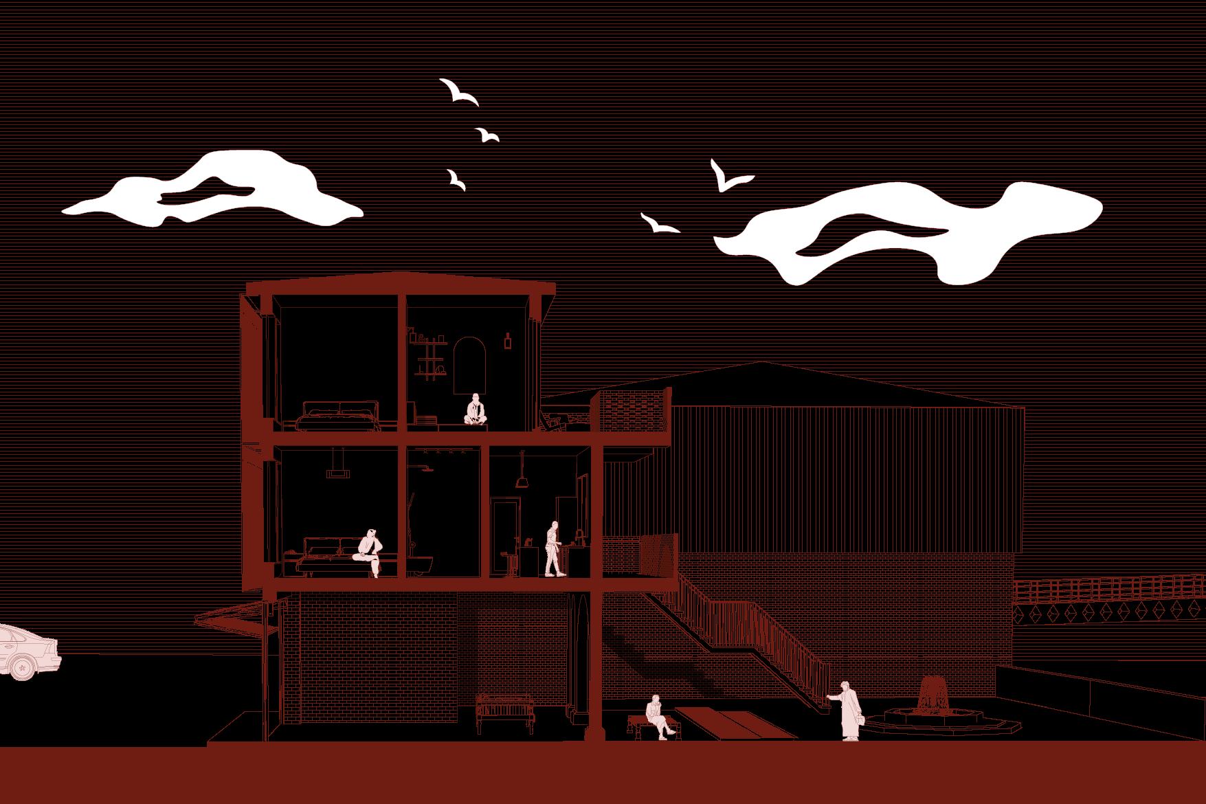 Create a space of commons, which allows space for individual identity exploration and showcases diversity through architecture and programme. To create a residential design culturally sensible to differences. Using the landscape and pavilions to voice the experience of fleeing war and conflict.