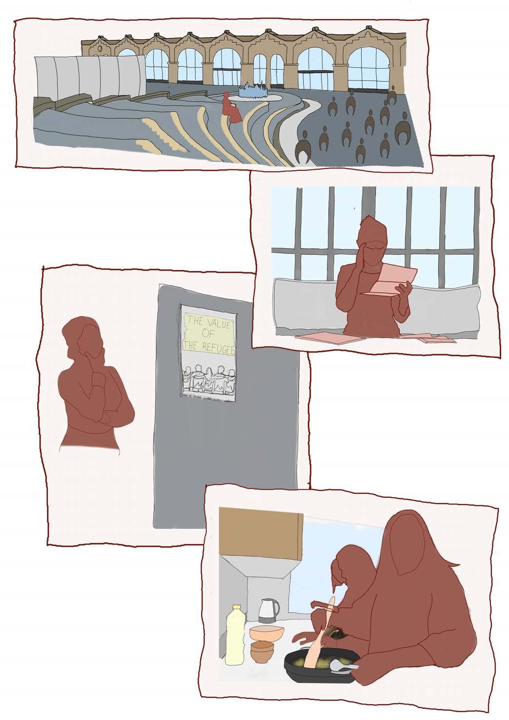 Established residents collaborate with refugee families, utilising shared resources and leverage the landscape to raise awareness about the refugee journey, while fostering cultural exchange through food and community gardening, alongside providing support to help refugees establish themselves in their new environment.