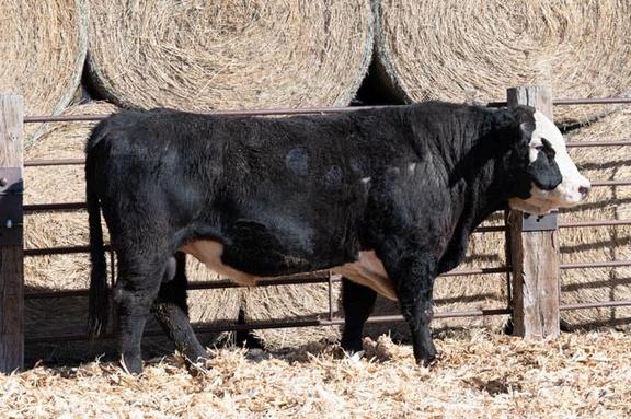 Widebasewithabighip.Greatfeetandsupersound.Willmakea greatbigcountrybull Notheifersafe Top10%BW,$EN,$M