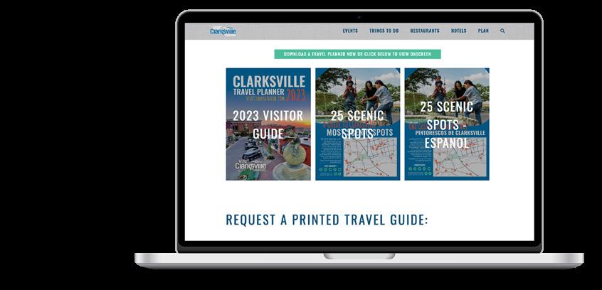 Escanee el código QR para una descarga digital o recoja una copia impresa en el Centro de Bienvenida de Visit Clarksville180 Holiday Drive