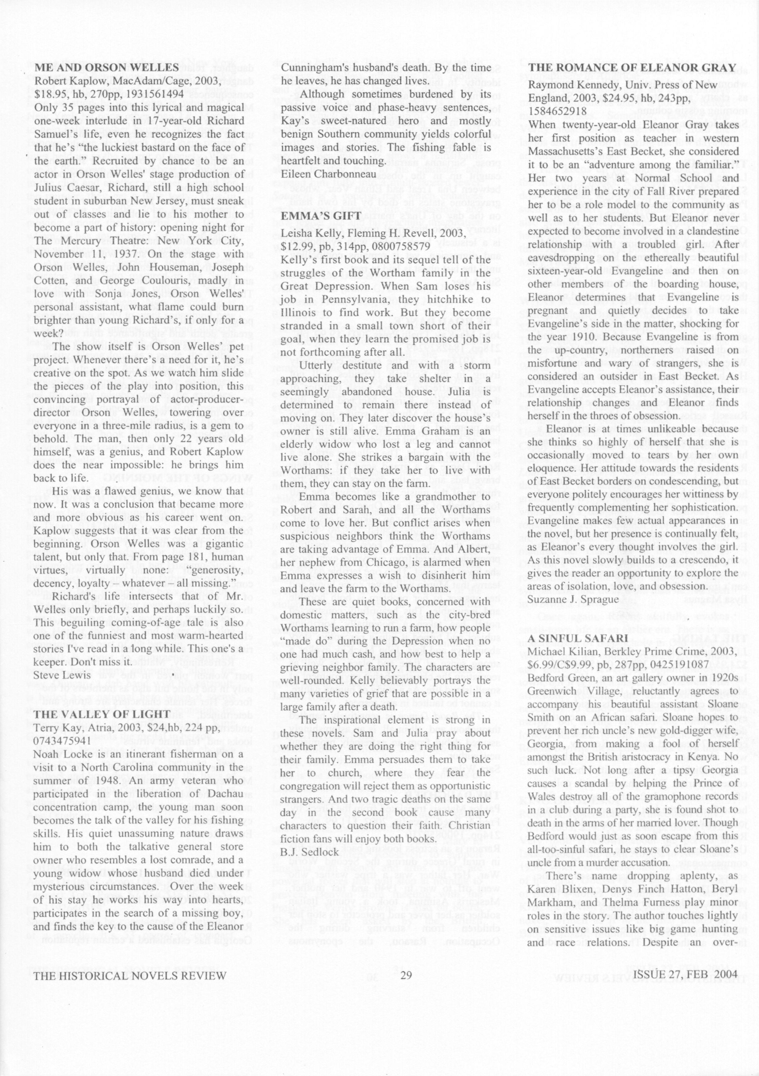 T II E III STO RI CAL I\OVEL SOC I ETY ON T l-I E I NTE R NET: Wl· BSITI:.: 111111 .historicalno, elsociety.org.