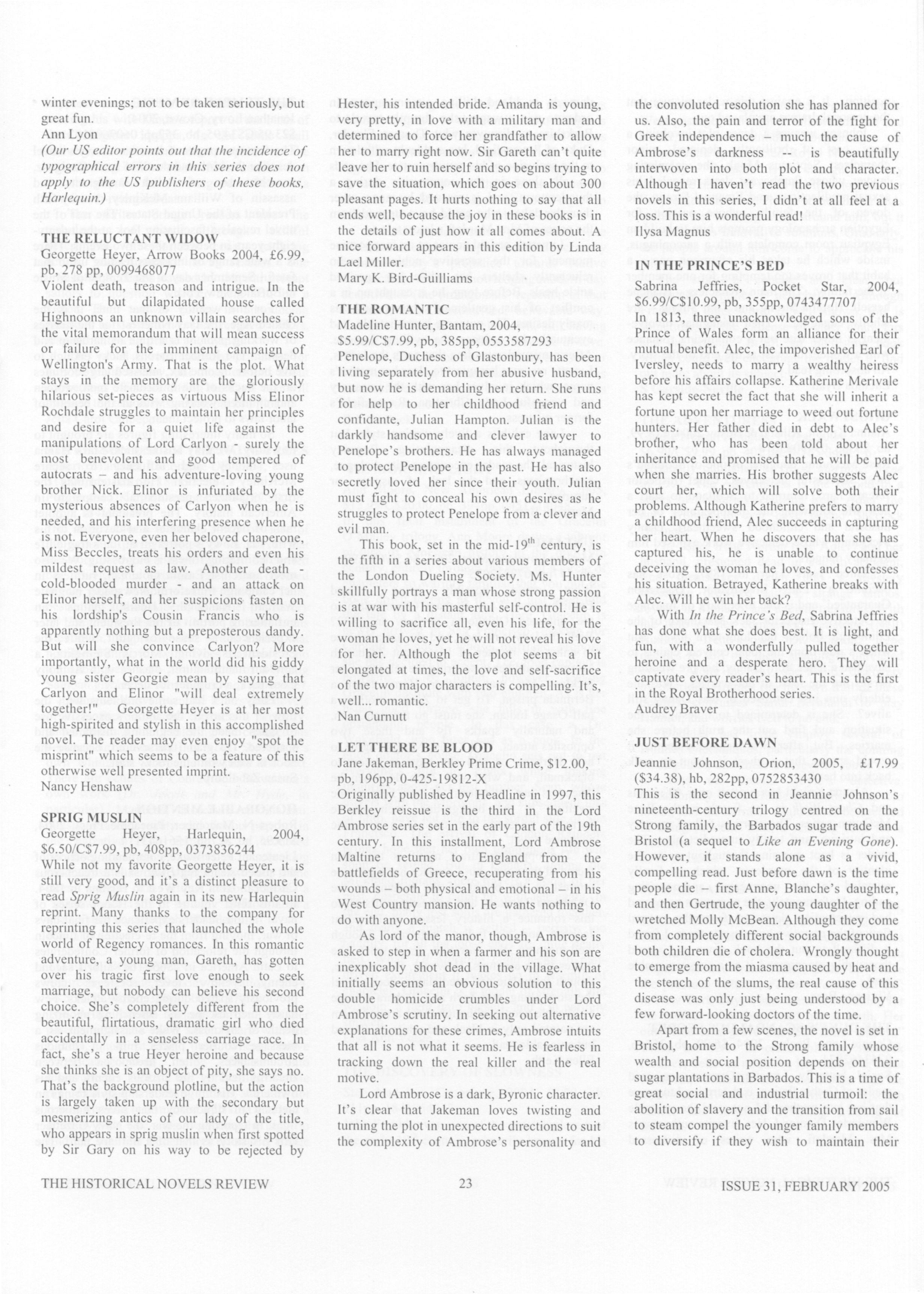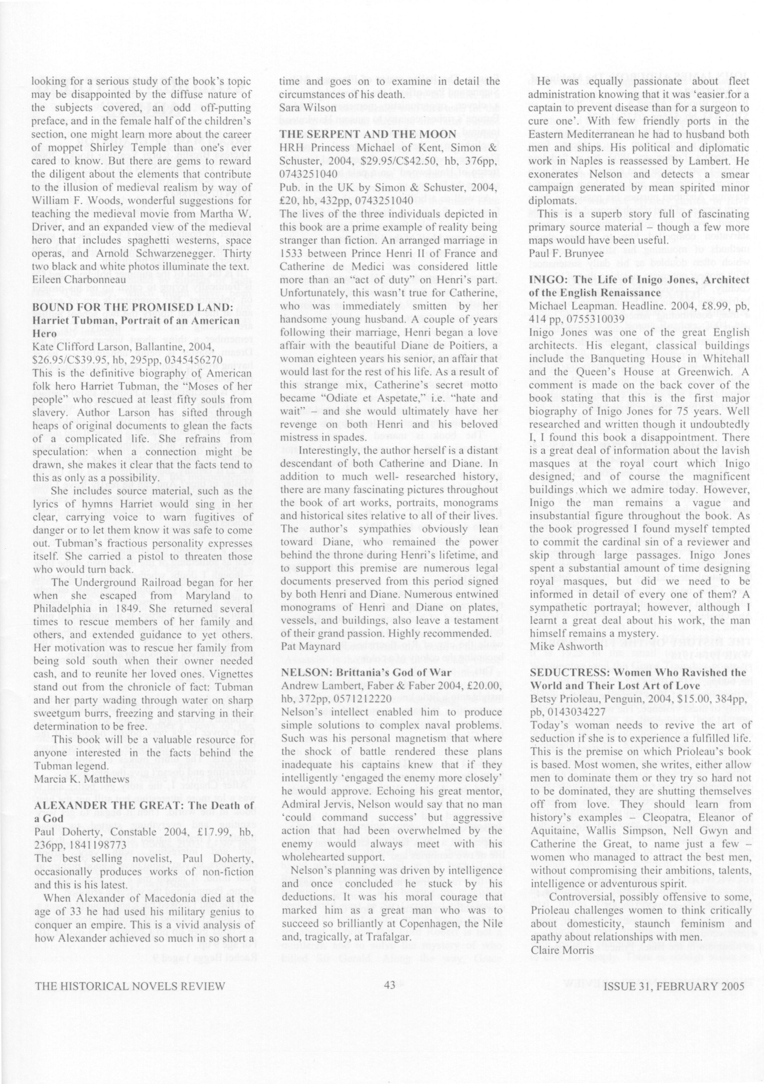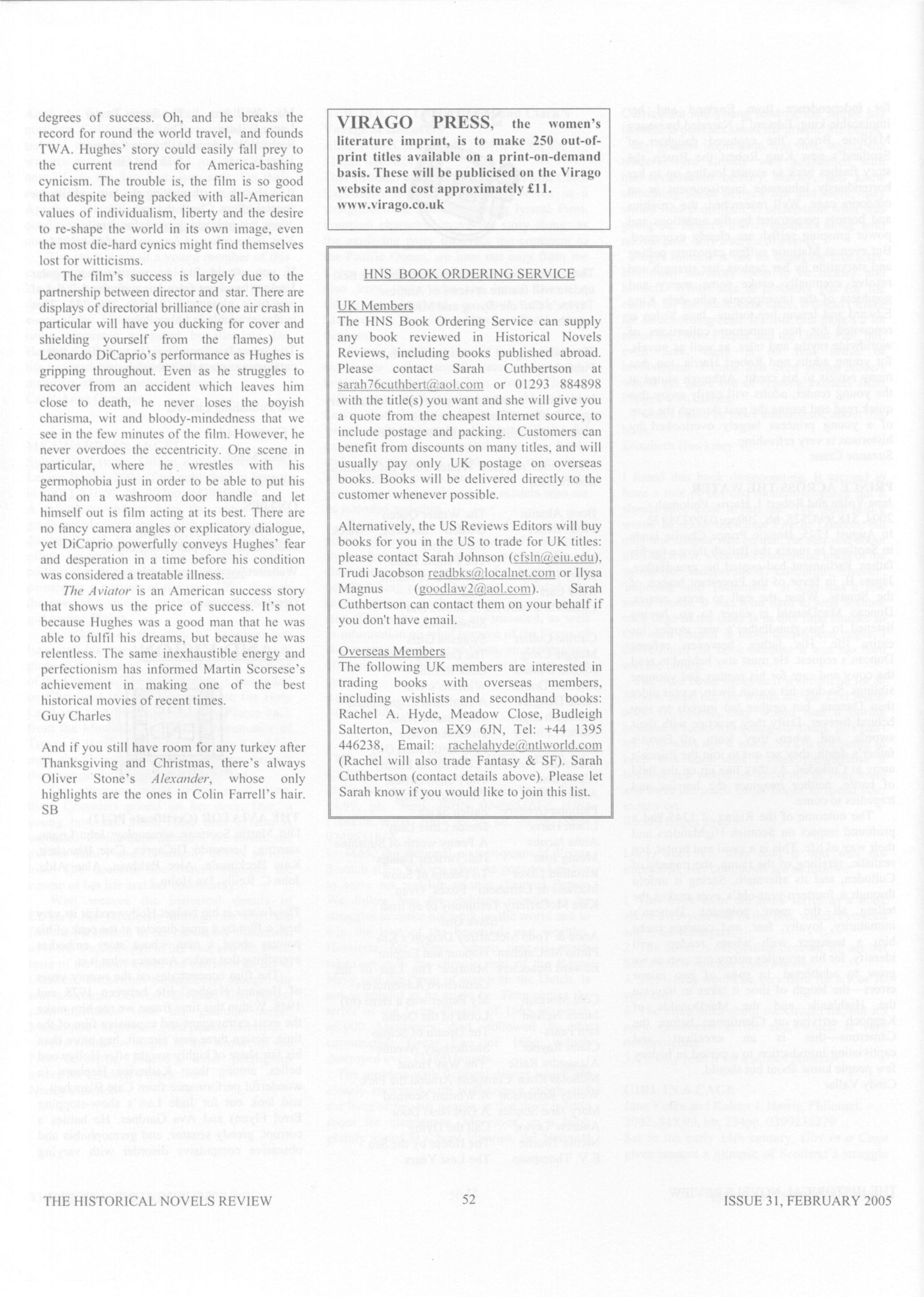 The HNS Book Ordering Service can supply any book reviewed in Historical Nove ls Reviews , inclu ding books published abroad. Please contact Sarah Cuthbertson at sarah 76cuthberi(maol.corn or O1293 884898 with the title(s) you want and she will give you a quote from the cheapest Internet source, to include postage and packing. Customers can benefit from discounts on many titles, and will usually pay only UK postage on overseas books. Books will be delivered directly to the customer whenever possible.