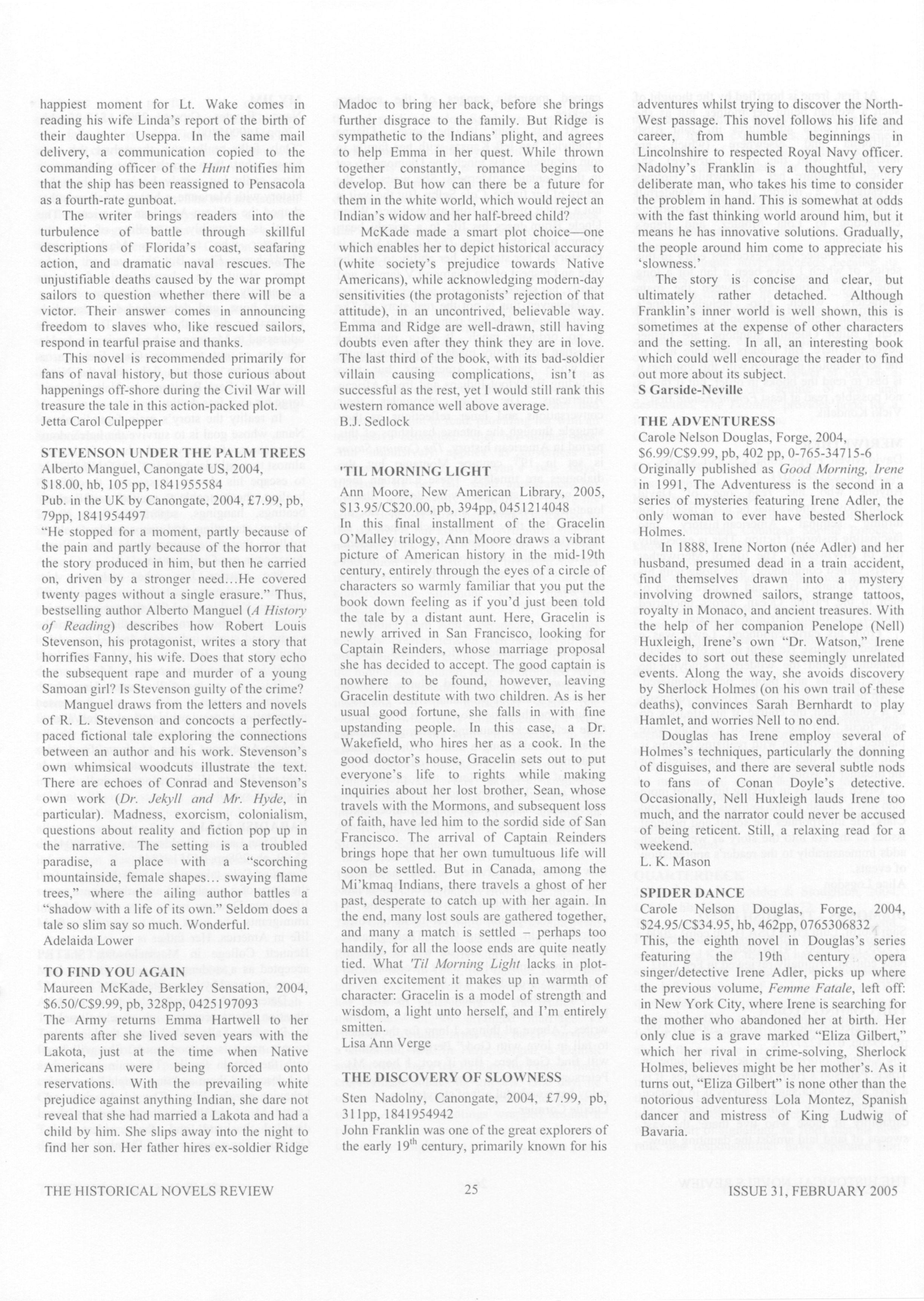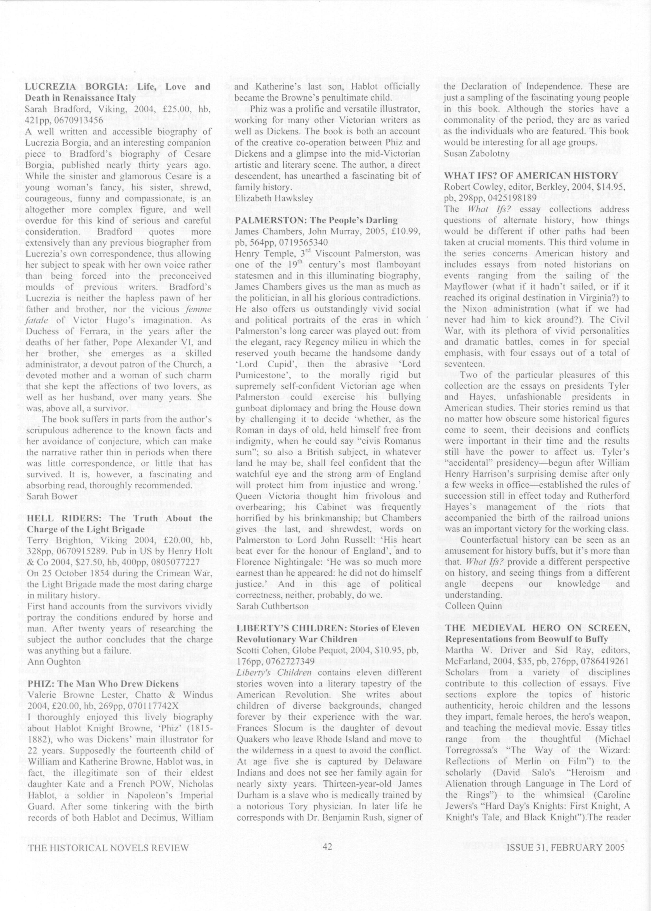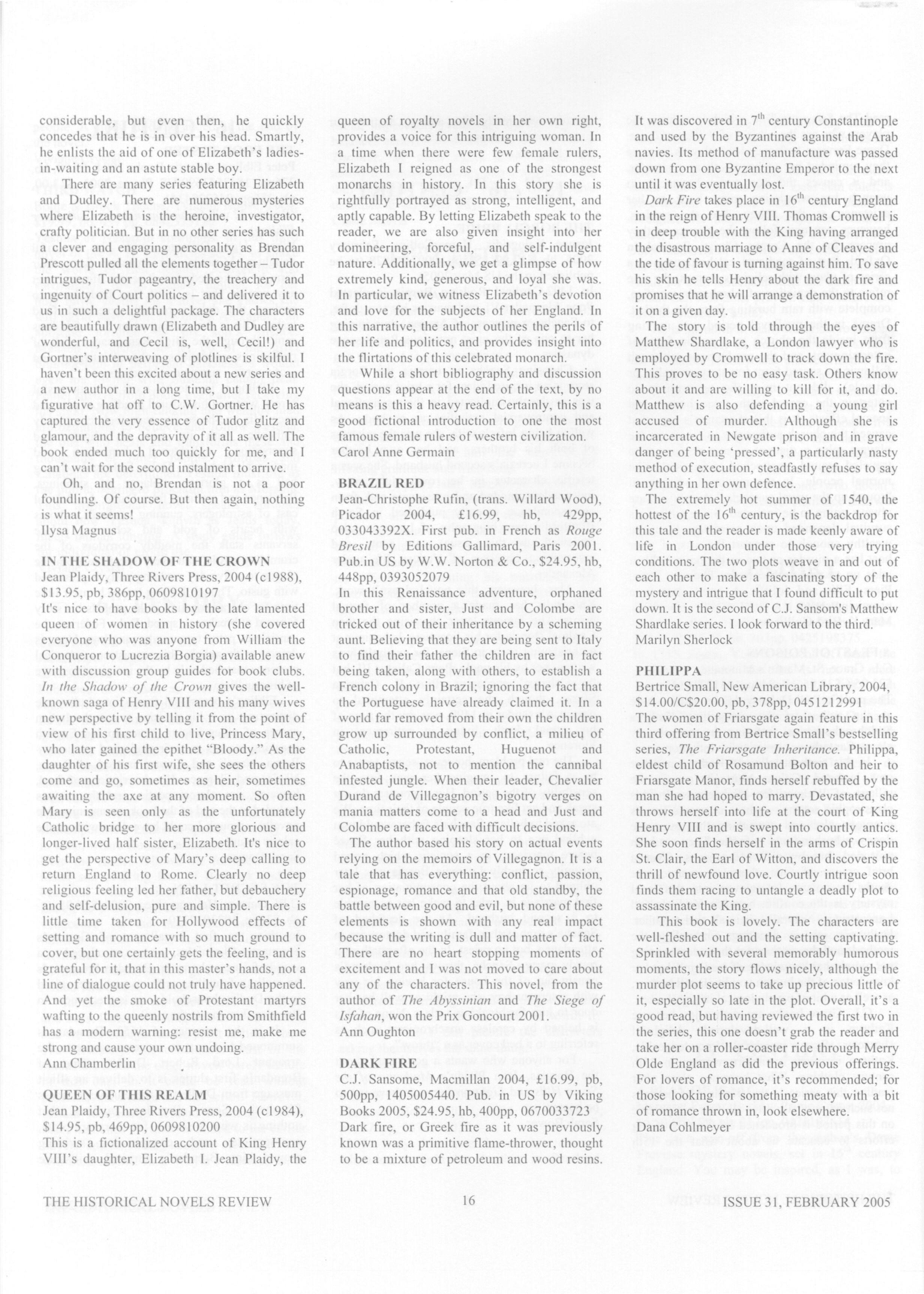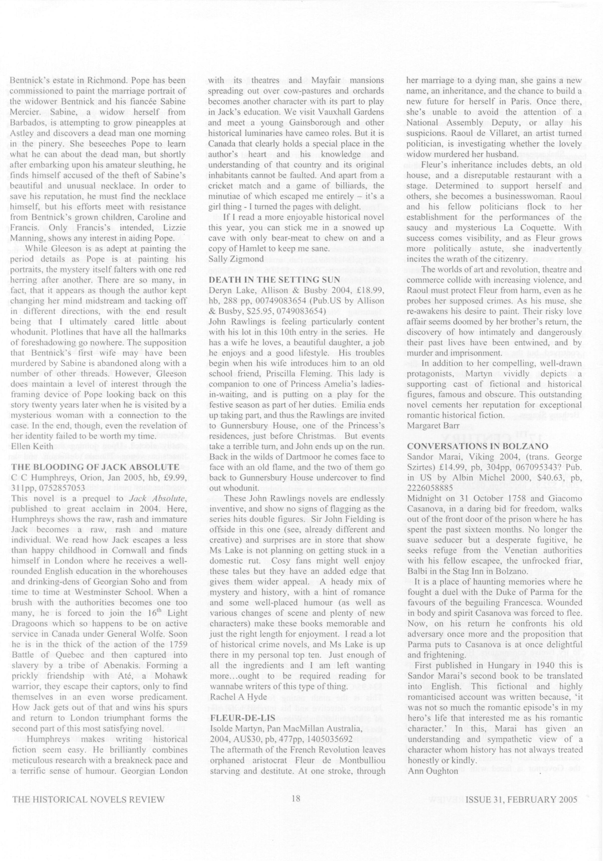 The HNS Book Ordering Service can supply any book reviewed in Historical Nove ls Reviews , inclu ding books published abroad. Please contact Sarah Cuthbertson at sarah 76cuthberi(maol.corn or O1293 884898 with the title(s) you want and she will give you a quote from the cheapest Internet source, to include postage and packing. Customers can benefit from discounts on many titles, and will usually pay only UK postage on overseas books. Books will be delivered directly to the customer whenever possible.