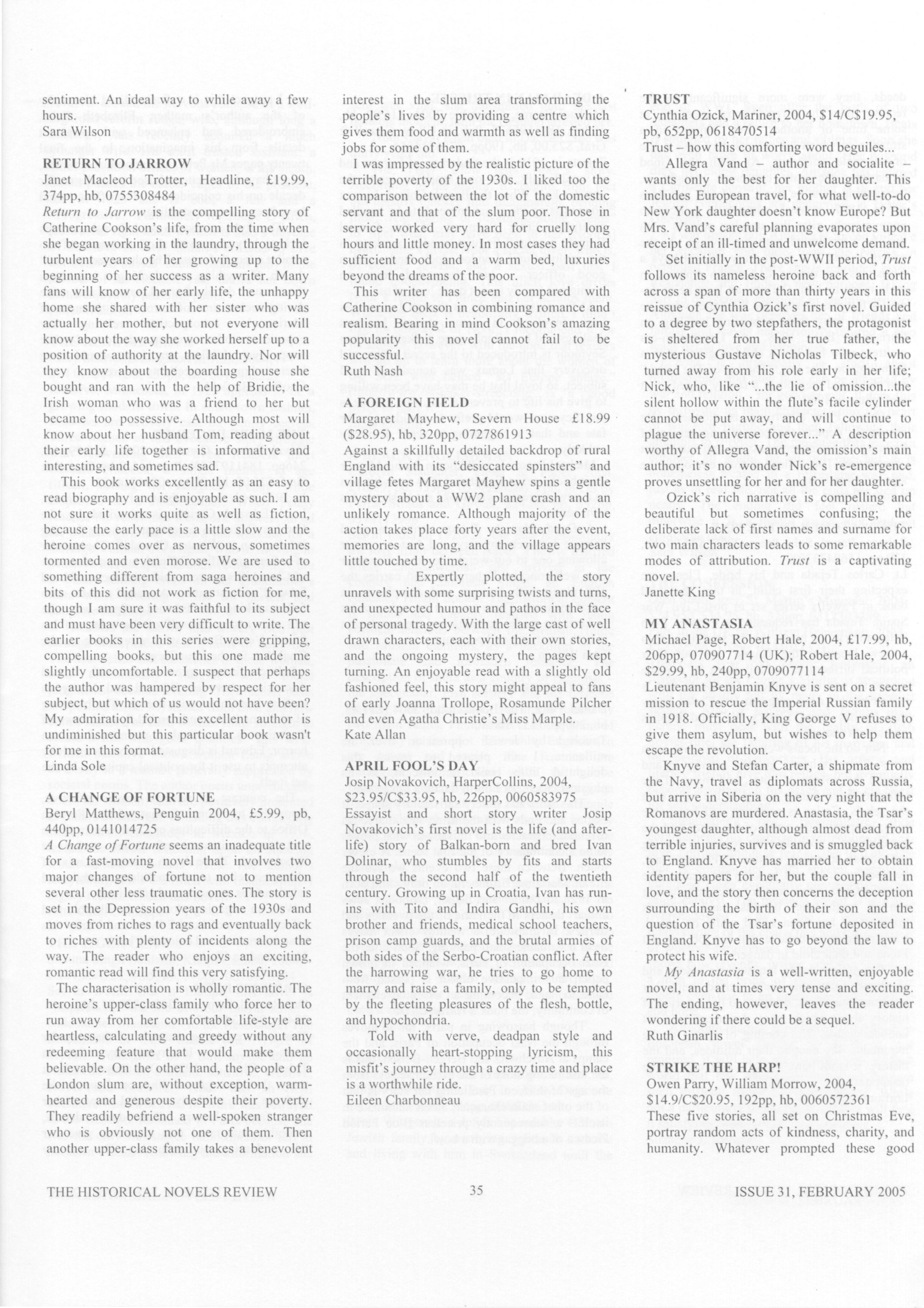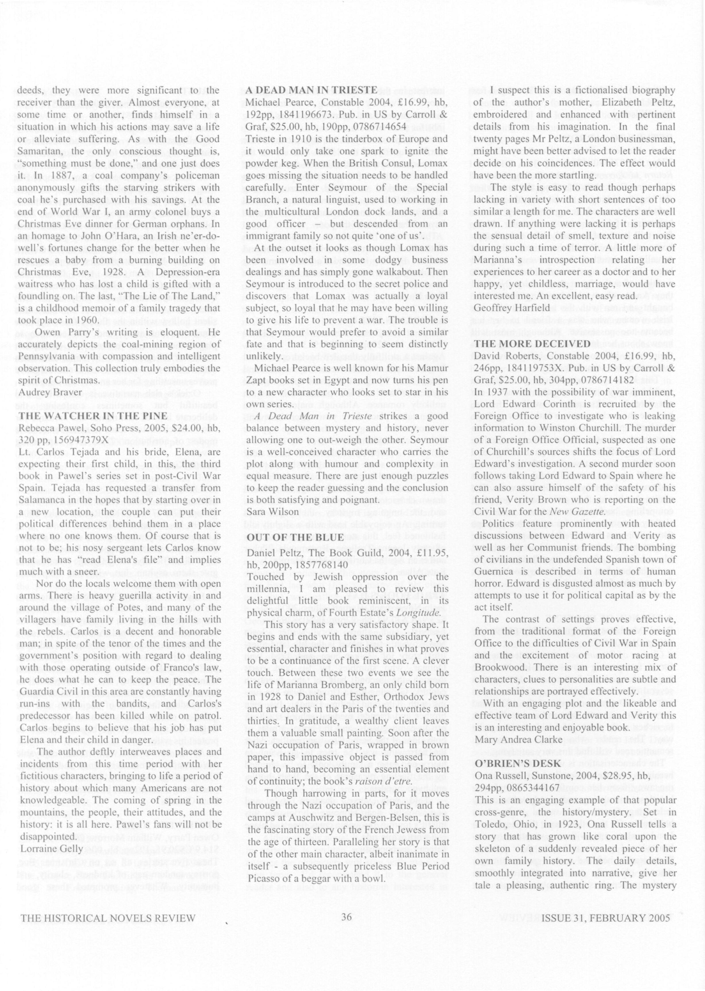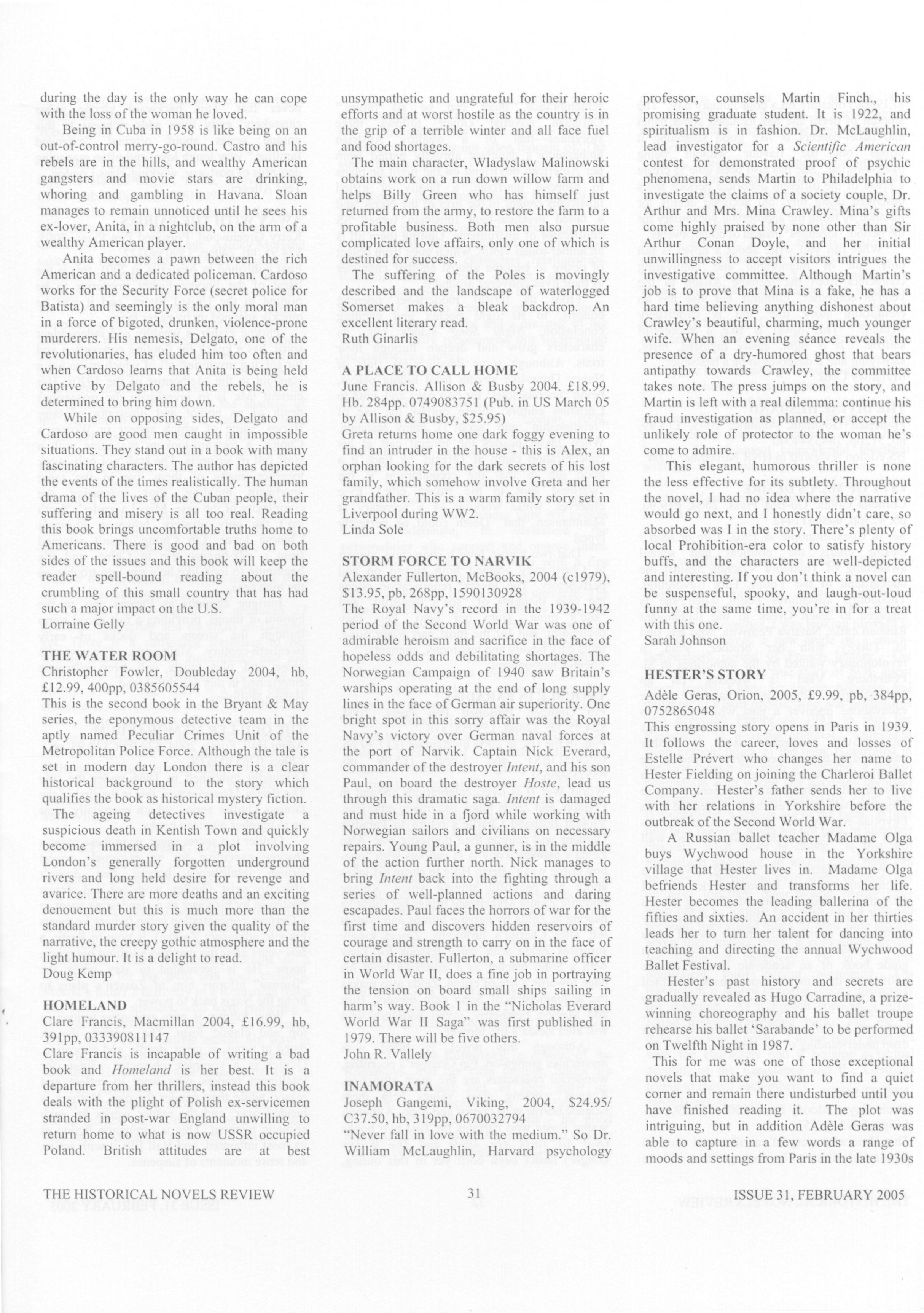 The following UK members are interested in trading books w ith overseas members , including wish li sts and secondhand books: Rachel A. Hyde, Meadow Close, Budleigh Salte11on, Devon EX9 6JN, Tel: +44 1395 446238, Email: rachelahvdetil:ntlworld.com (Rachel wil l also trade Fantasy & SF). Sarah Cuthbertson (contact details above). Please let Sarah know if you would like to join this l ist.