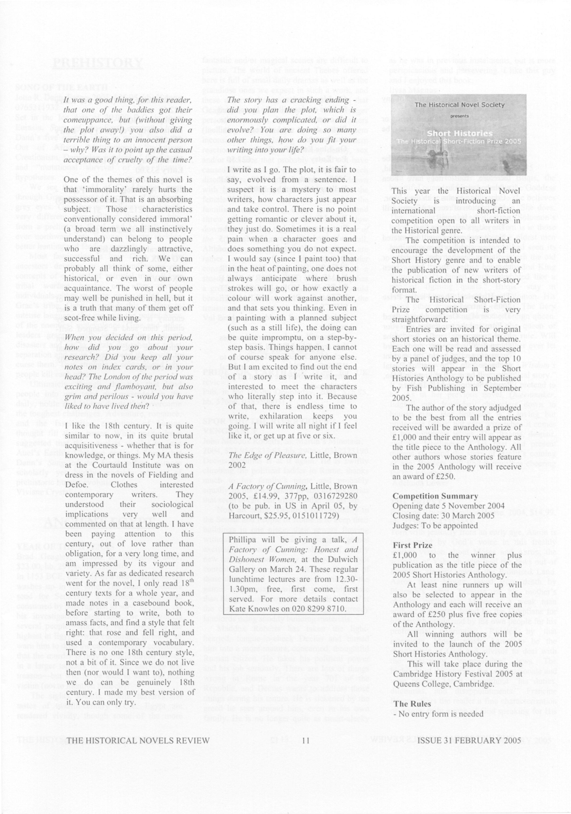 All winning authors will be invited to the launch of the 2005 Short Histories Anthology. This will take place during the Cambridge History Festival 2005 at Queens College, Cambridge.