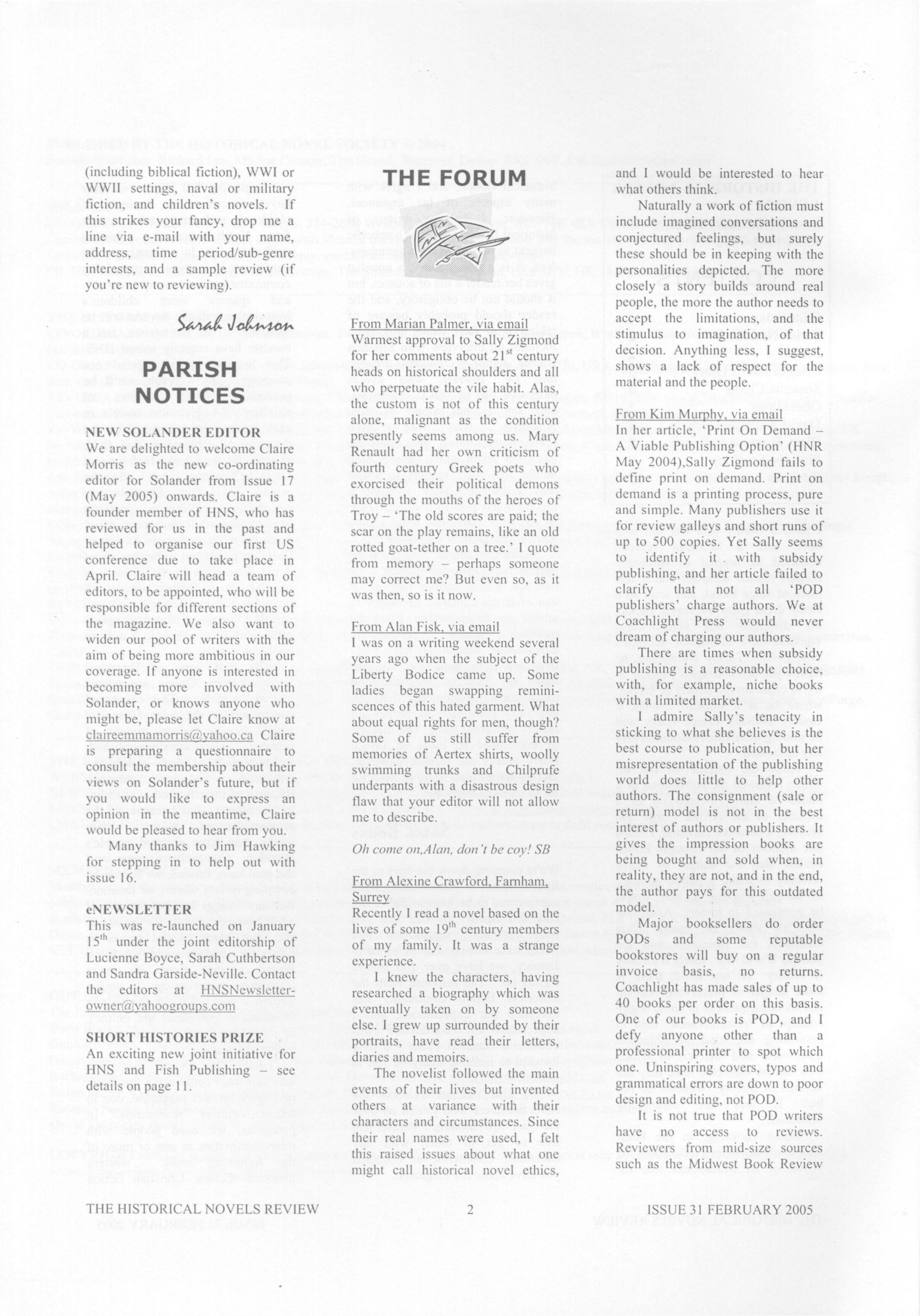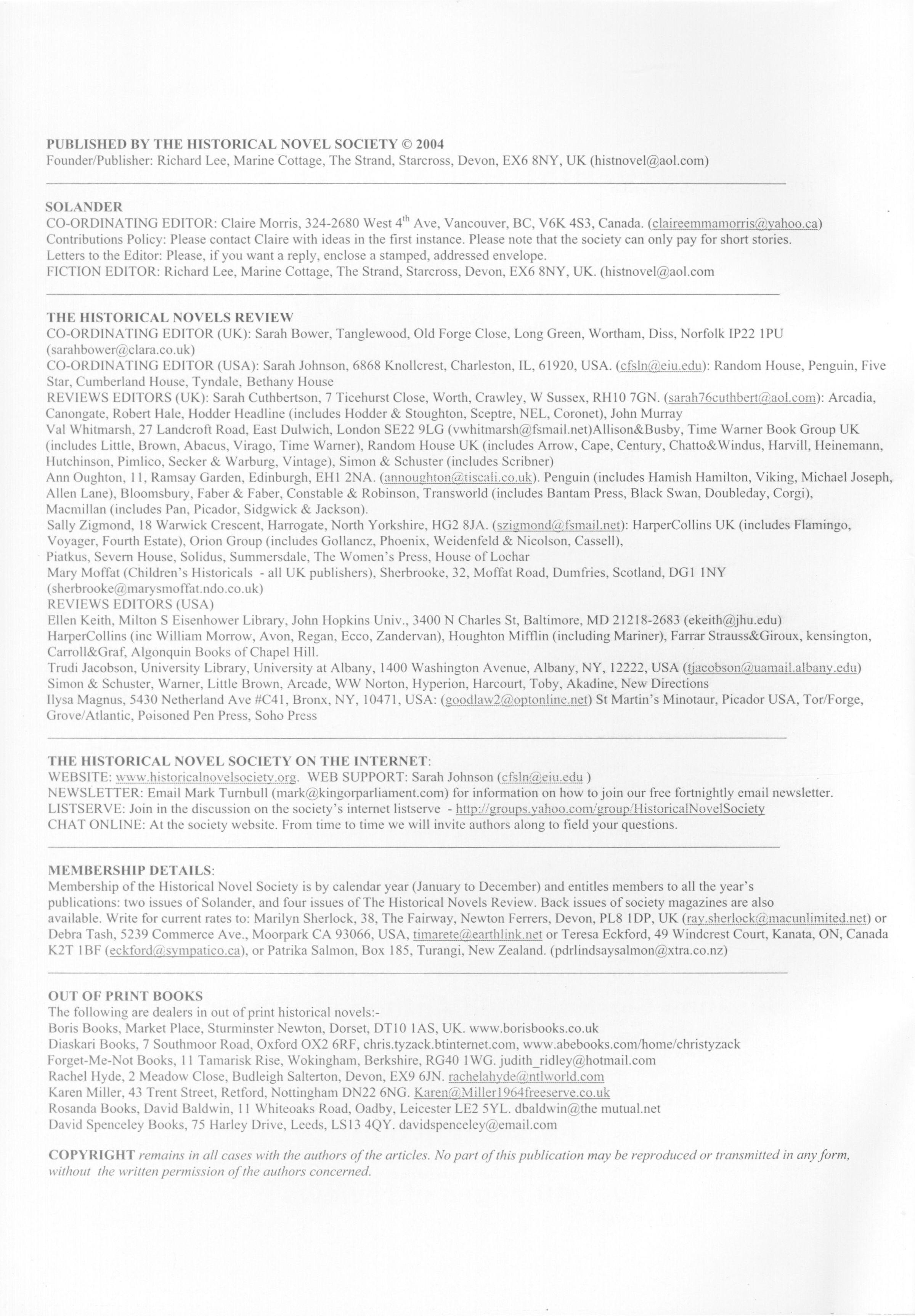 Historical Novel Society PO BOX 63 EXETER EX68WX.