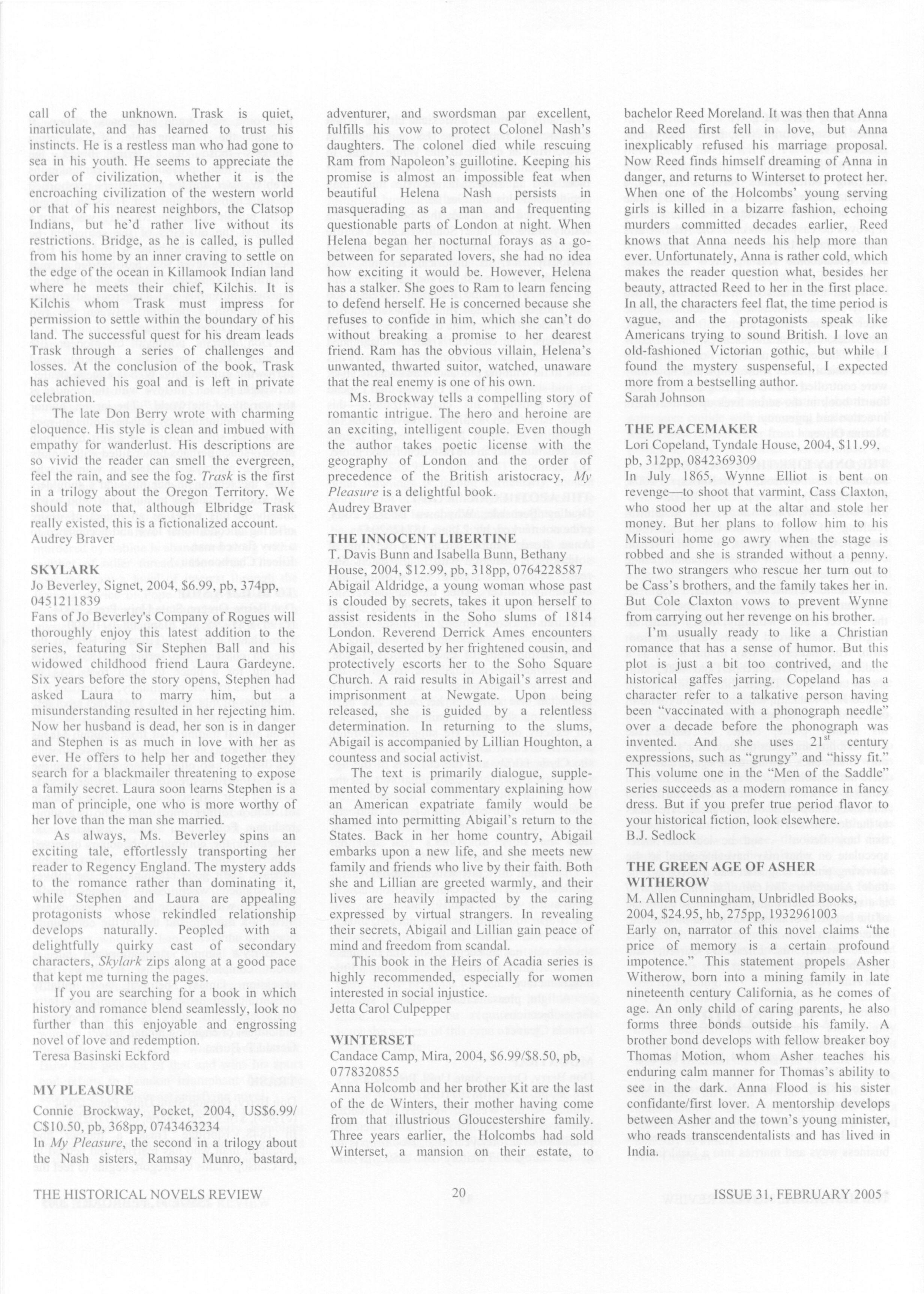 In Richardson's Pamela too , Pamela goes on and on and on, frequently repeating herself, and surely wearing her fingers out writing. Today, when we even flip channels during commercials , not many readers would keep faith with such length. Life goes at a faster pace and we tend to impatience. It may not be commendable but it is true. I was extremely conscious of that from the sta11. As a rule, I rewrite several times, and cut and cut. Working in newspapers is helpful. It encourages the eradication of at least some selfindulgences of too-lengthy expression , or of using big words when short ones do as well or better. It is no compliment to a reader to bore them - and I did my best to avoid that.