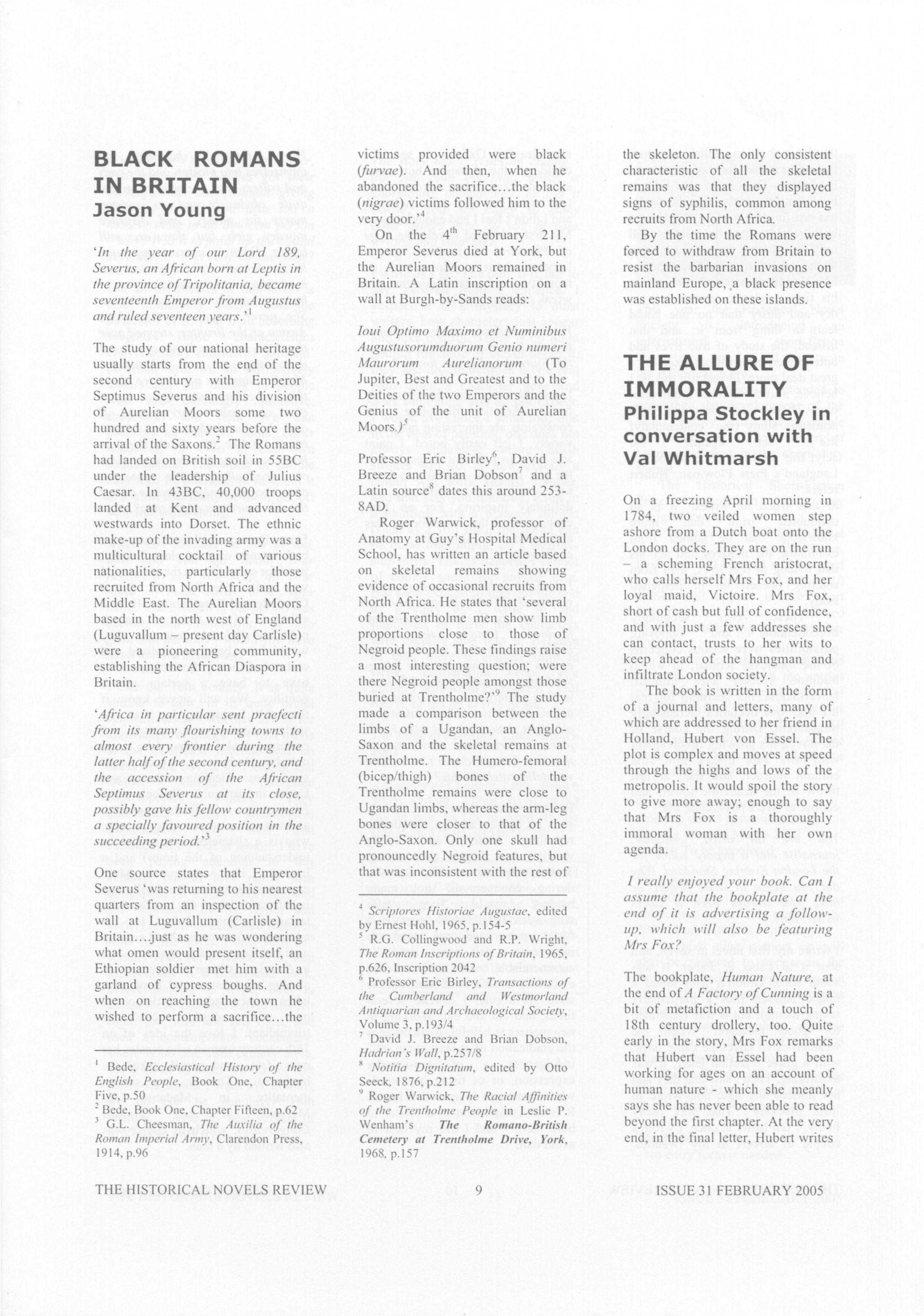 the skeleton. The only consistent characteristic of all the skeletal remains was that they displayed signs of syphilis, common among recruits from North Africa. By the time the Romans were forced to withdraw from Britain to resist the barbarian invasions on mainland Europe, a black presence was estab li shed on these islands.