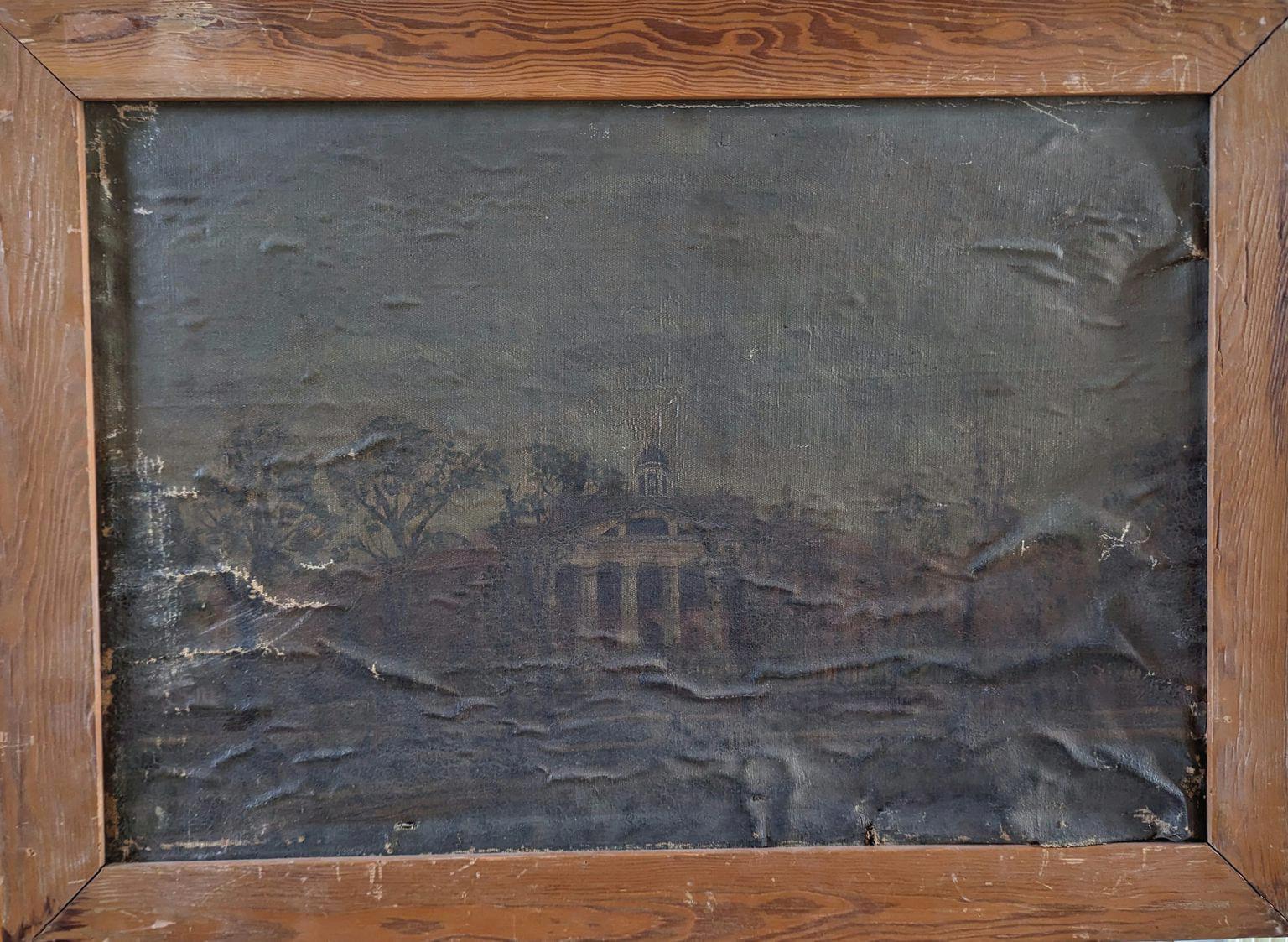 An inscription on the reverse of the canvas indicates that the painting was completed around 1857, three decades after the hospital opened. While the back of the canvas bears a signature, the artist’s name has been scratched out. Further research will be conducted in the coming months to uncover more information about the artist. Currently, the painting is undergoing professional conservation. Follow our social media for updates on its care.