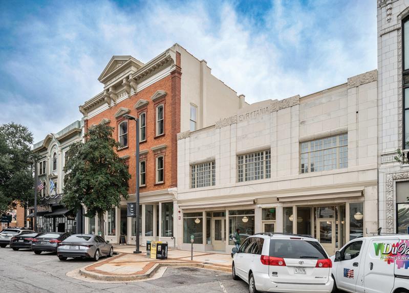 For years as other historic buildings along Main Street benefited from sensitive rehabilitation, the ca.-1901 Brown and ca.-1938 Eurytania buildings stood poised for reinvestment. Under the ownership of the Middleton family, the buildings recently underwent an extensive, historically sensitive revitalization. Directed by architect Scott Lambert, Mashburn Construction restored the Eurytania Building’s existing wood windows and returned the storefront to its original configuration with periodcorrect wood details, while on the Brown Building, Mashburn contractors restored cast iron columns, repaired extant portions of the building’s wood and cast cornice, and recreated an historically