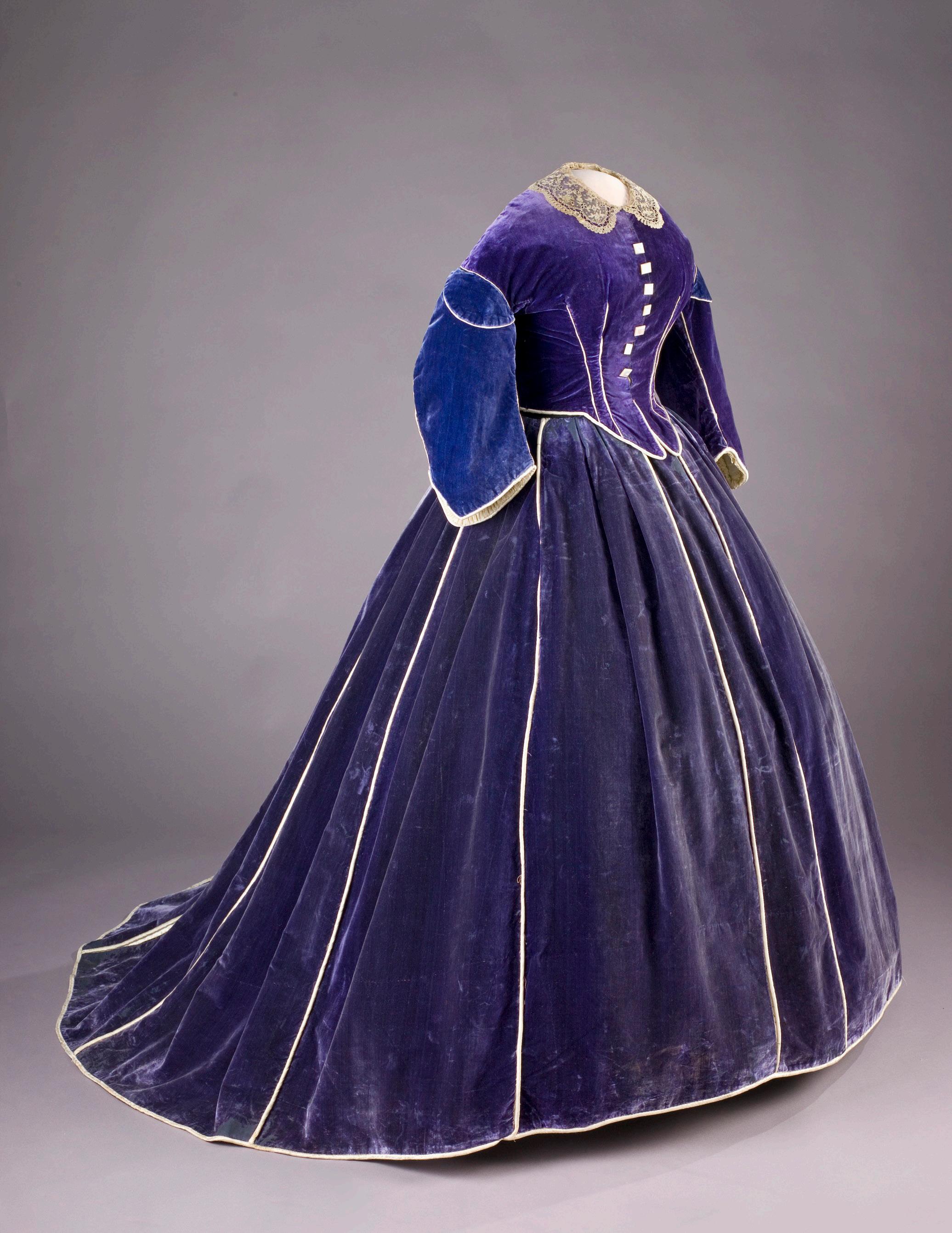 Mary Todd Lincoln’s purple velvet skirt, shown with daytime bodice, is believed to have been made by Elizabeth Keckley, who endured brutal enslavement before buying her freedom and becoming a successful dressmaker. Smithsonian National Museum of American History, bequest of Mrs. Julian James.