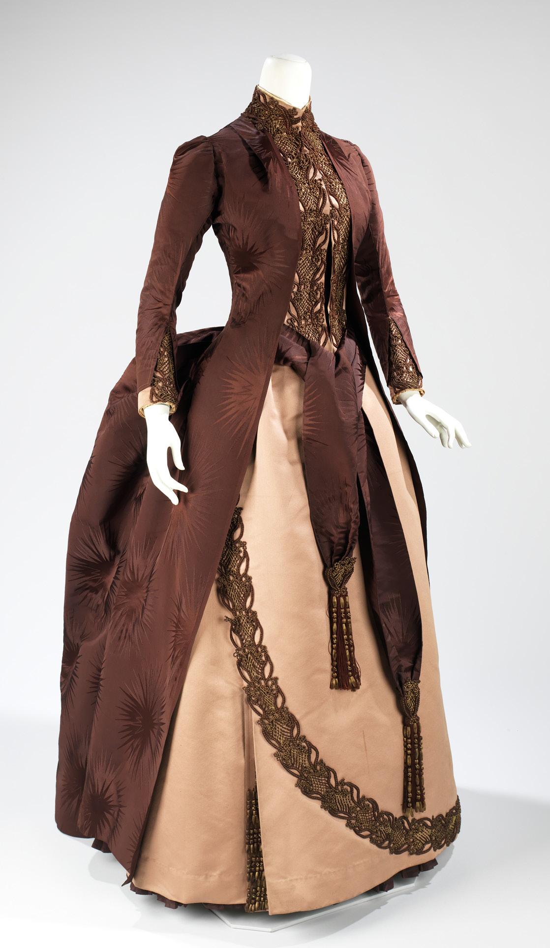 House of Worth afternoon dress. Influential French designer Charles Frederick Worth sparked an 1880s revival of the bustle skirt. Brooklyn Museum Costume Collection at Metropolitan Museum of Art, gift of the Brooklyn Museum, 2009; gift of Mrs. William E. S. Griswold, 1941.