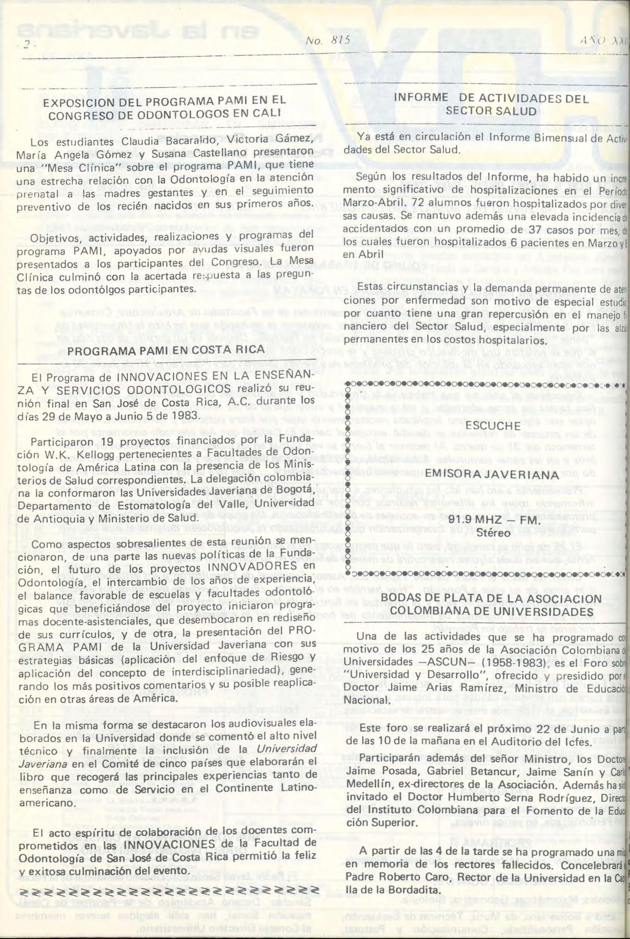 Hoy en la javeriana año 1983 (796 - 838) by Archivo Histórico Javeriano - Issuu