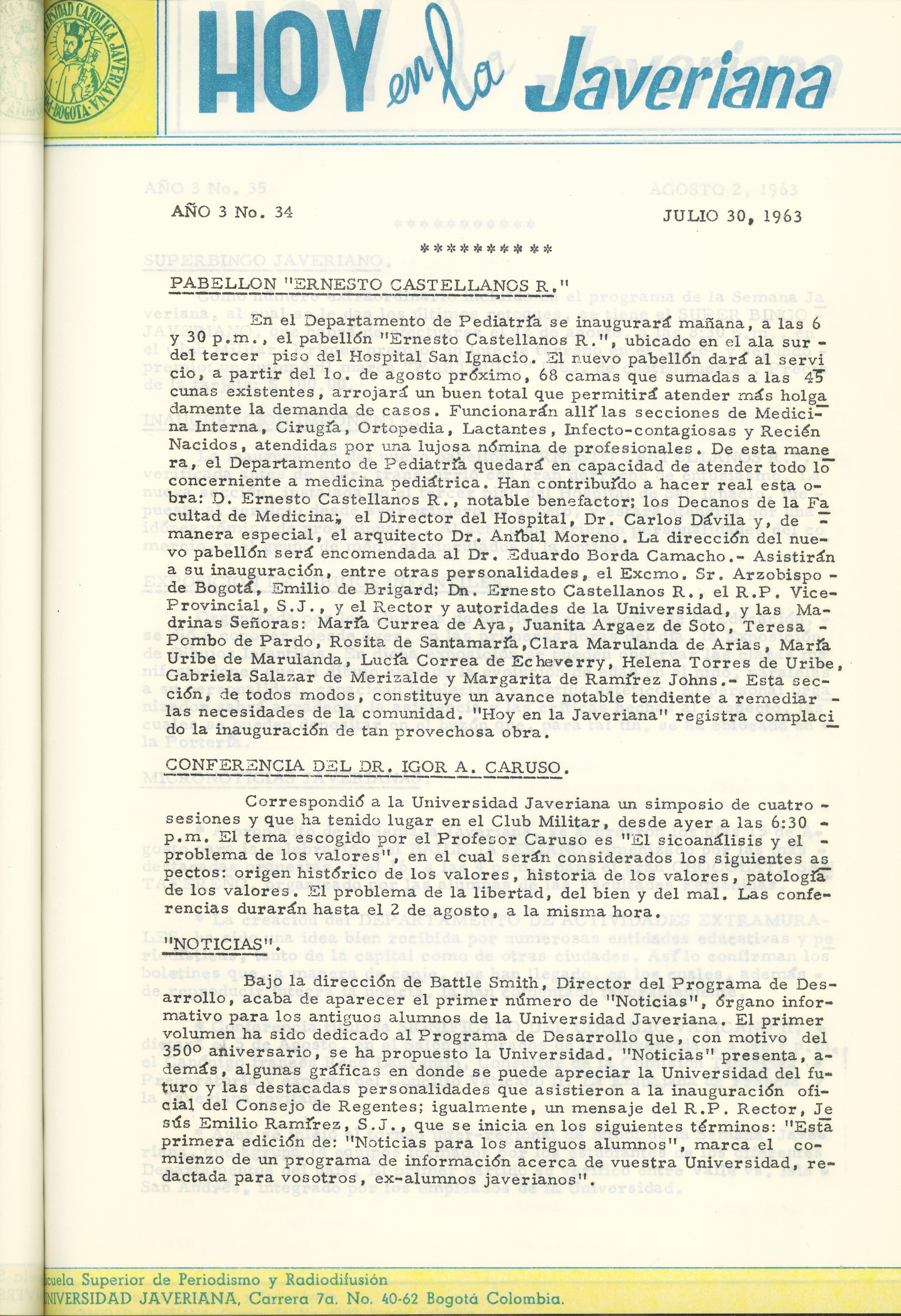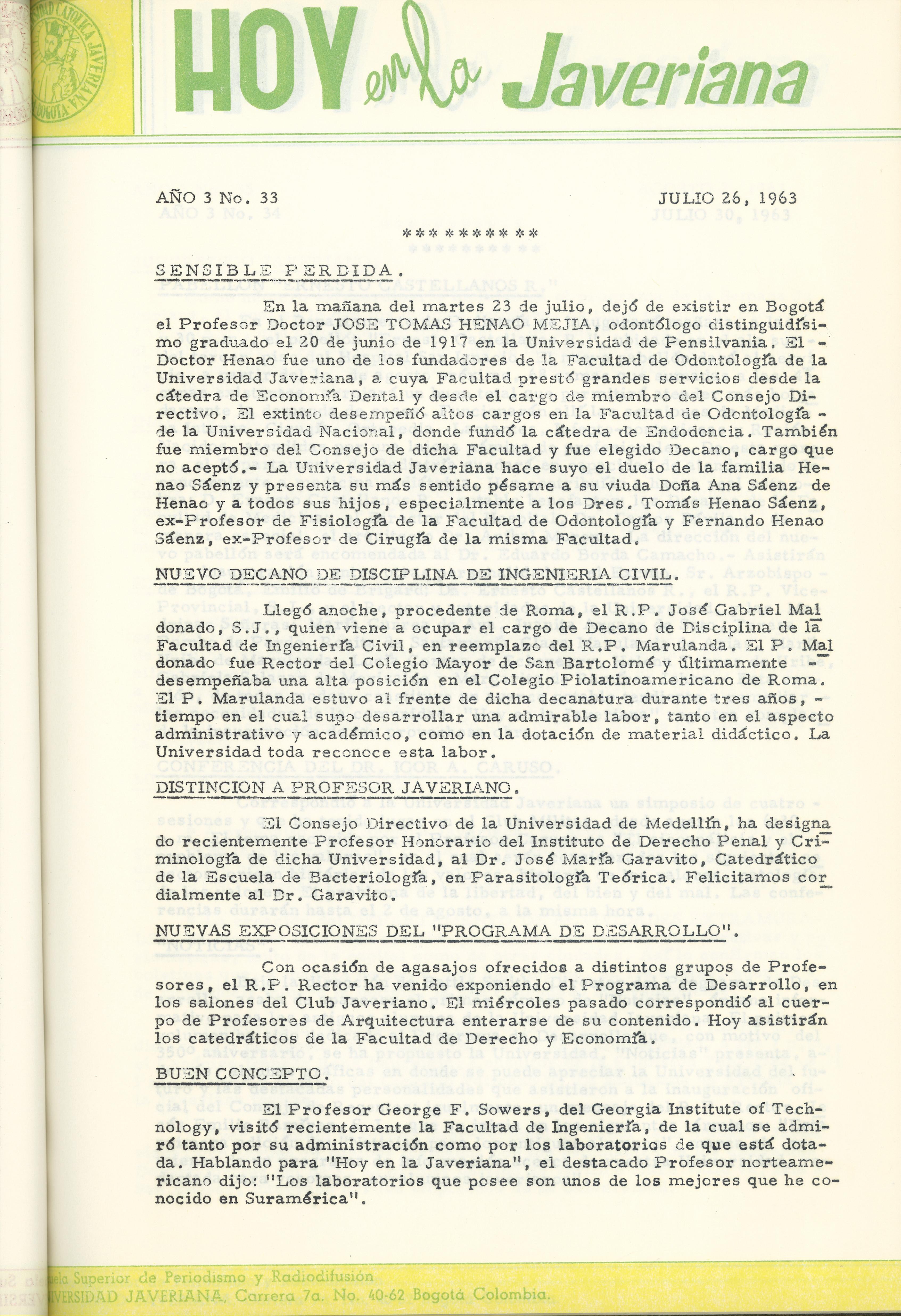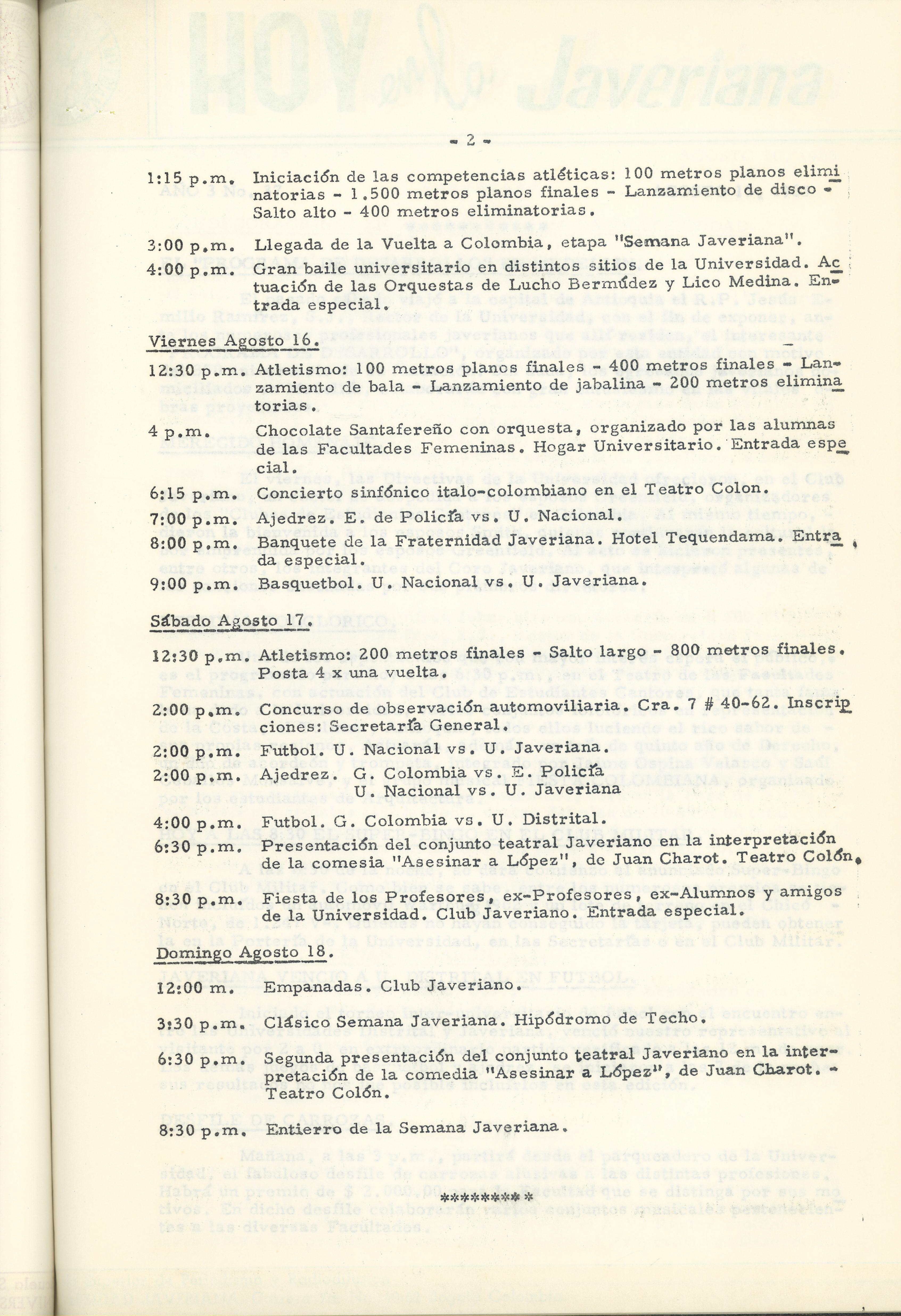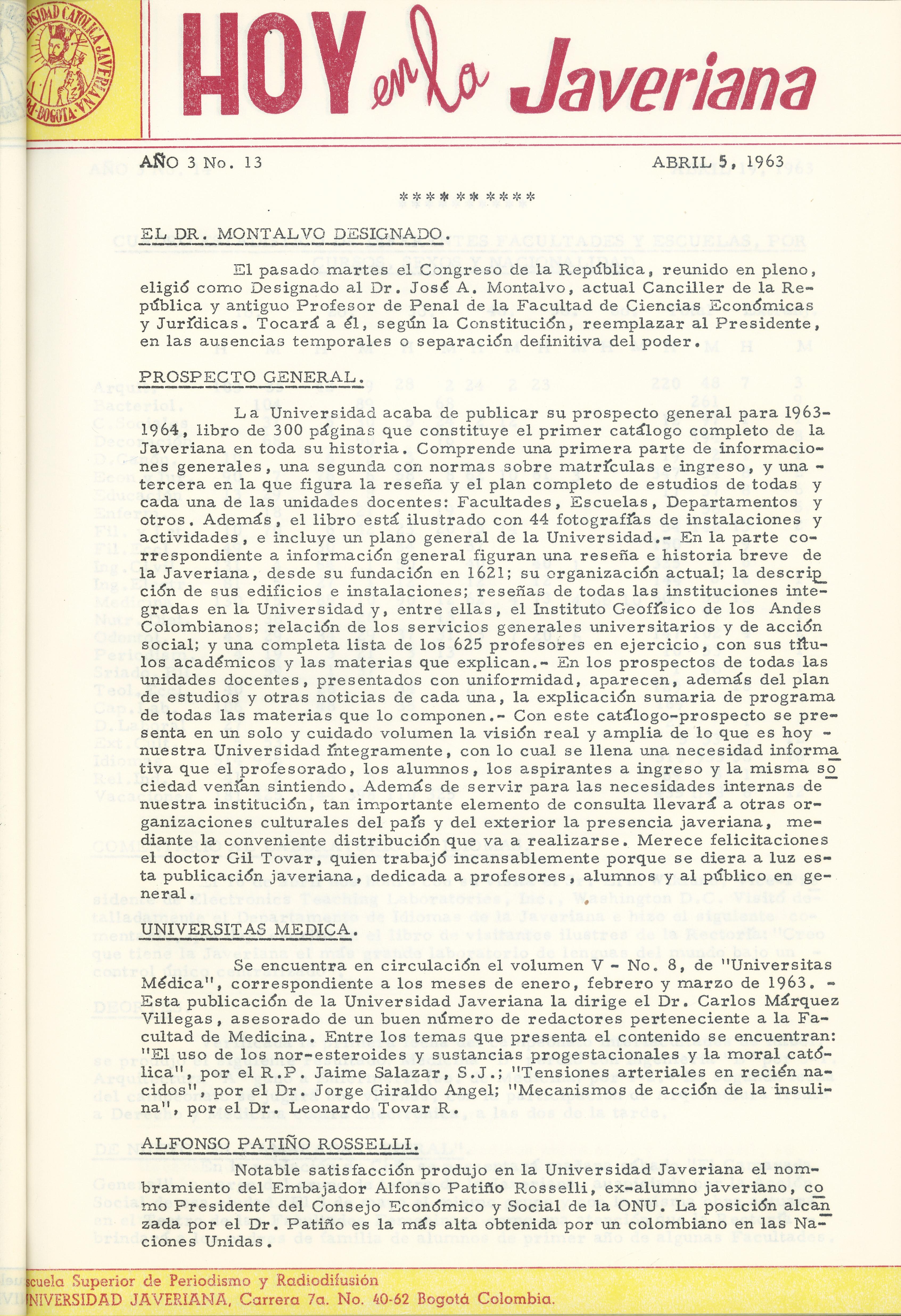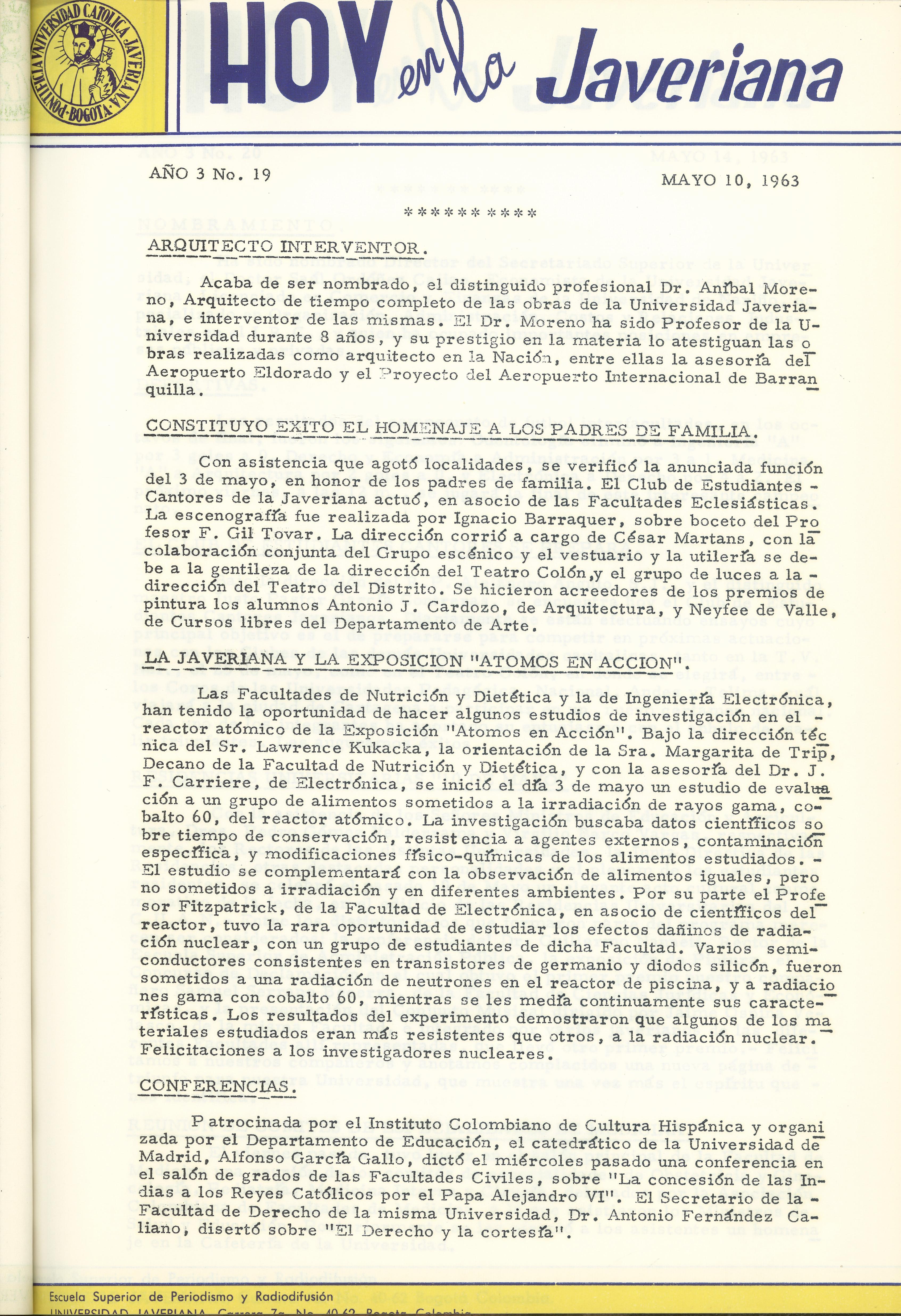 NUESTRA ulTrl\4A .EIDICION.- can un rnildn d.e gracias para .quienes fueron nuestros amables lecte¡res y colaboradores , ttHoy en ra Javeriana, finaliaa con el rufrz:,ero 62 sus labores inforrn&tivas en eI presente año. Que todos los estudiantes y anrigos dicfruten cl.e gratas vacaciones, son nuestros rr.ia