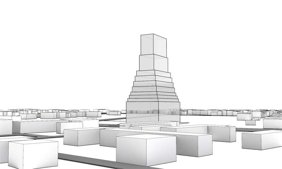 THE CONCEPT WAS BASED ON INTERSECTING CIRCLES AND HOW COULD THE PROPOSAL REDUCE THE GEOMETRICAL SHAPES OF THE TOWERS.