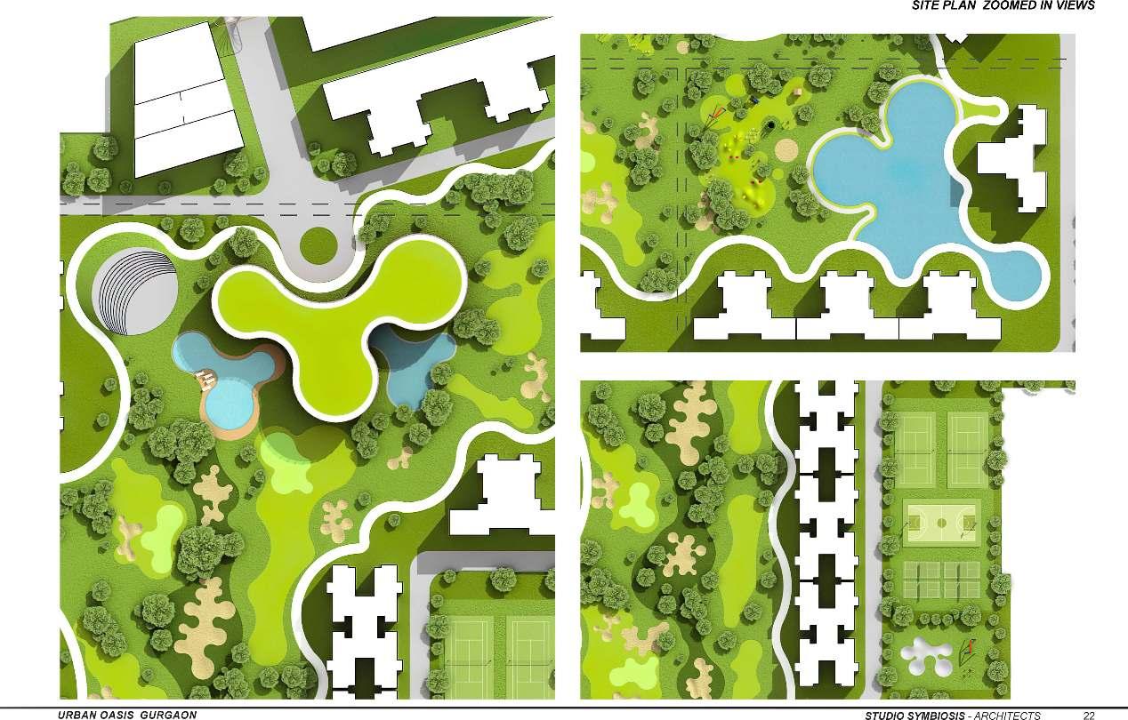 THELANDSCAPEDESIGNFOR THE URBAN OASIS WAS ONE OFTHEUNIQUETASKSOFMY INTERNSHIP AND ONE THAT REQUIRED A LOT OF CONTINUOUS CHANGES AND ALTERATIONS. THE LANDSCAPE DESIGN OPTION HAD PROVISIONS OF STATEOF-THE-ART FACILITIES FOR THE USERS INCLUDING A 6HOLE GOLD COURSE, A MEDITATION AREA, A CLUBHOUSE TO HOST INDOOR ACTIVITIES, A PARTY AREA AND MULTIPLE SPORTS FACILITIESAVAILABLE.