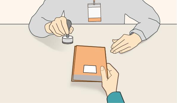 4. Gå til valgfunksjonær som skal stemple stemmeseddelen/-sedlene. Stemmeseddelen/-sedlene må ha godkjent stempel.