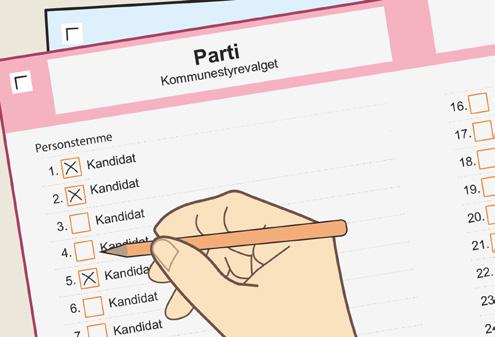 Hvor mange kandidatnavn du kan føre opp, står på stemmeseddelen. Vær oppmerksom på at når du gir en personstemme til kandidater fra andre partier/grupper, vil en såkalt listestemme bli overført til det andre partiet/ gruppen.
