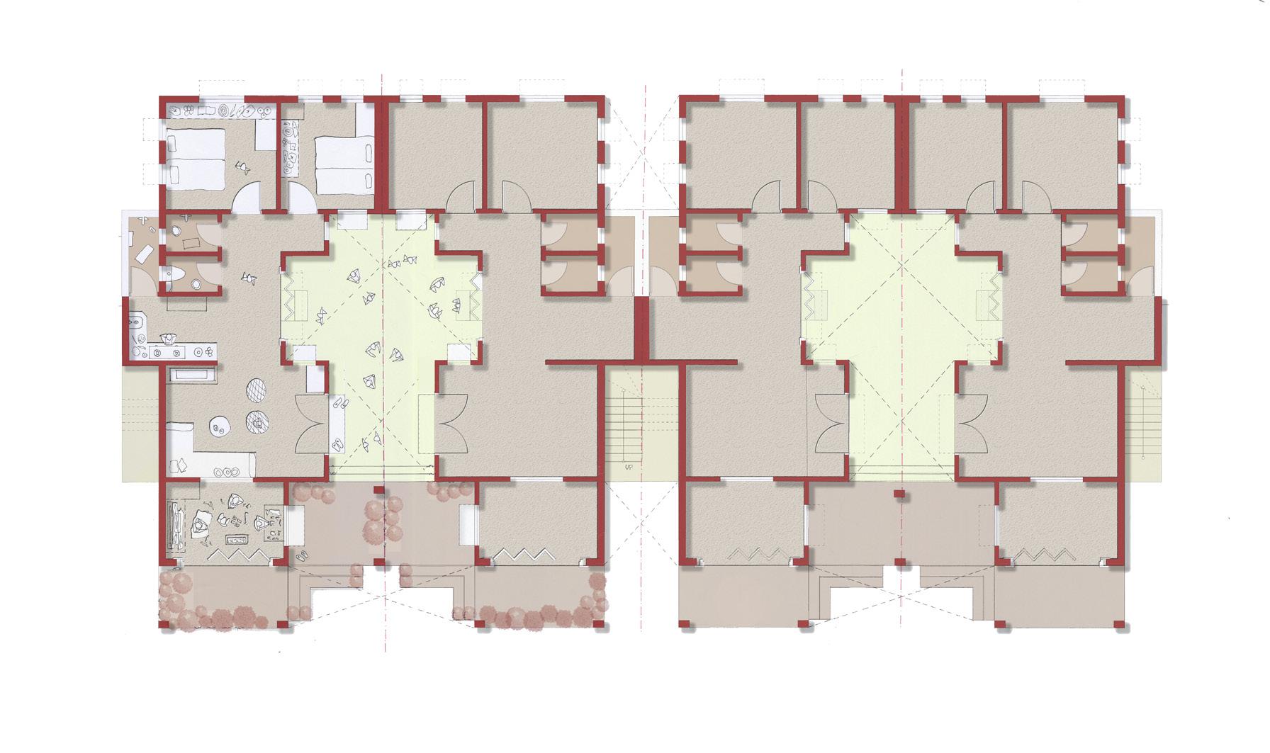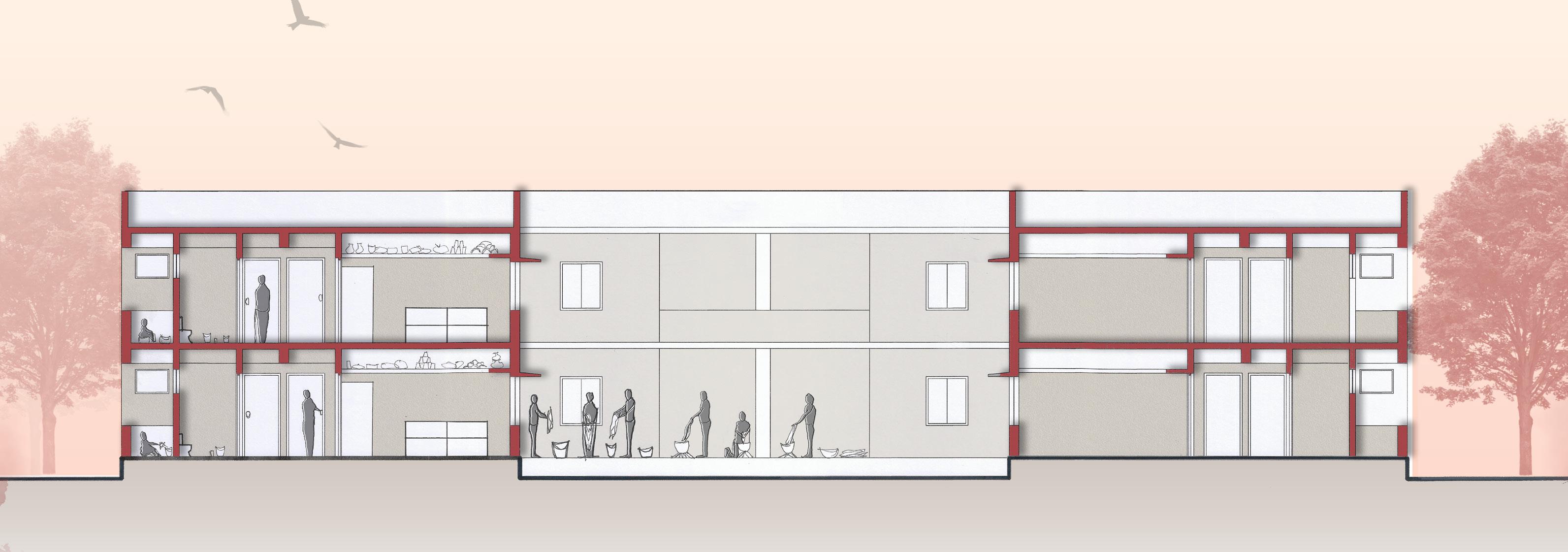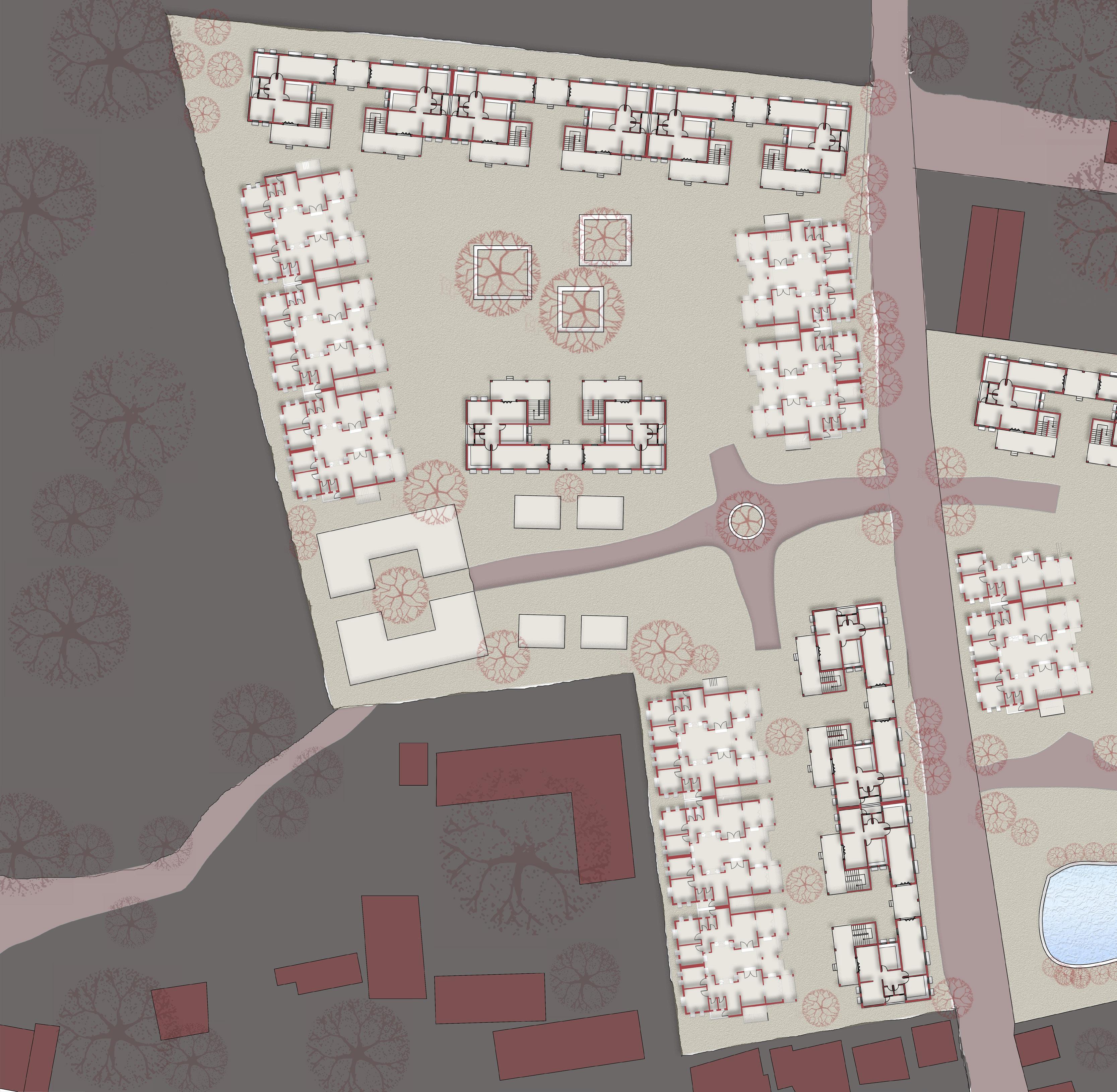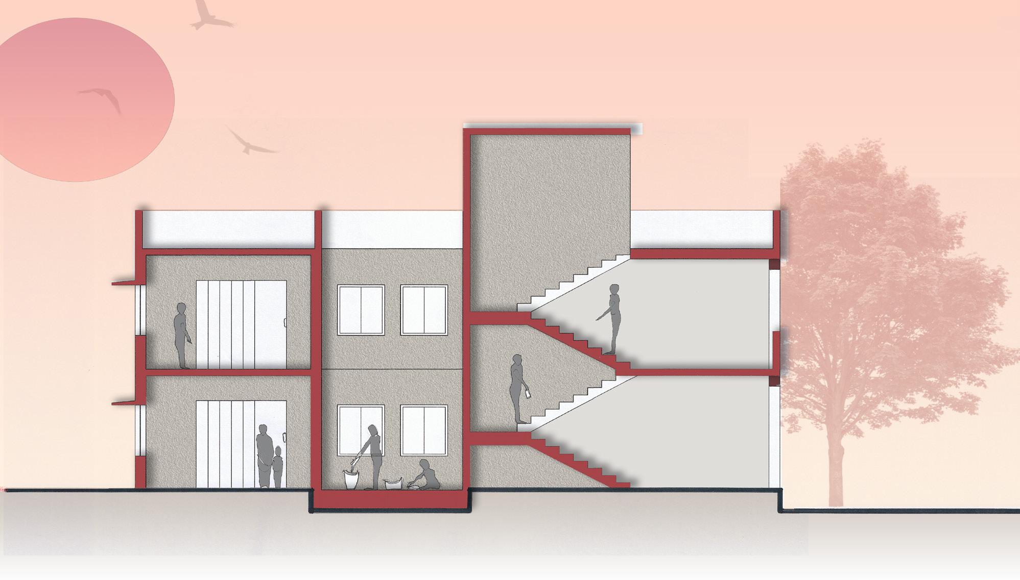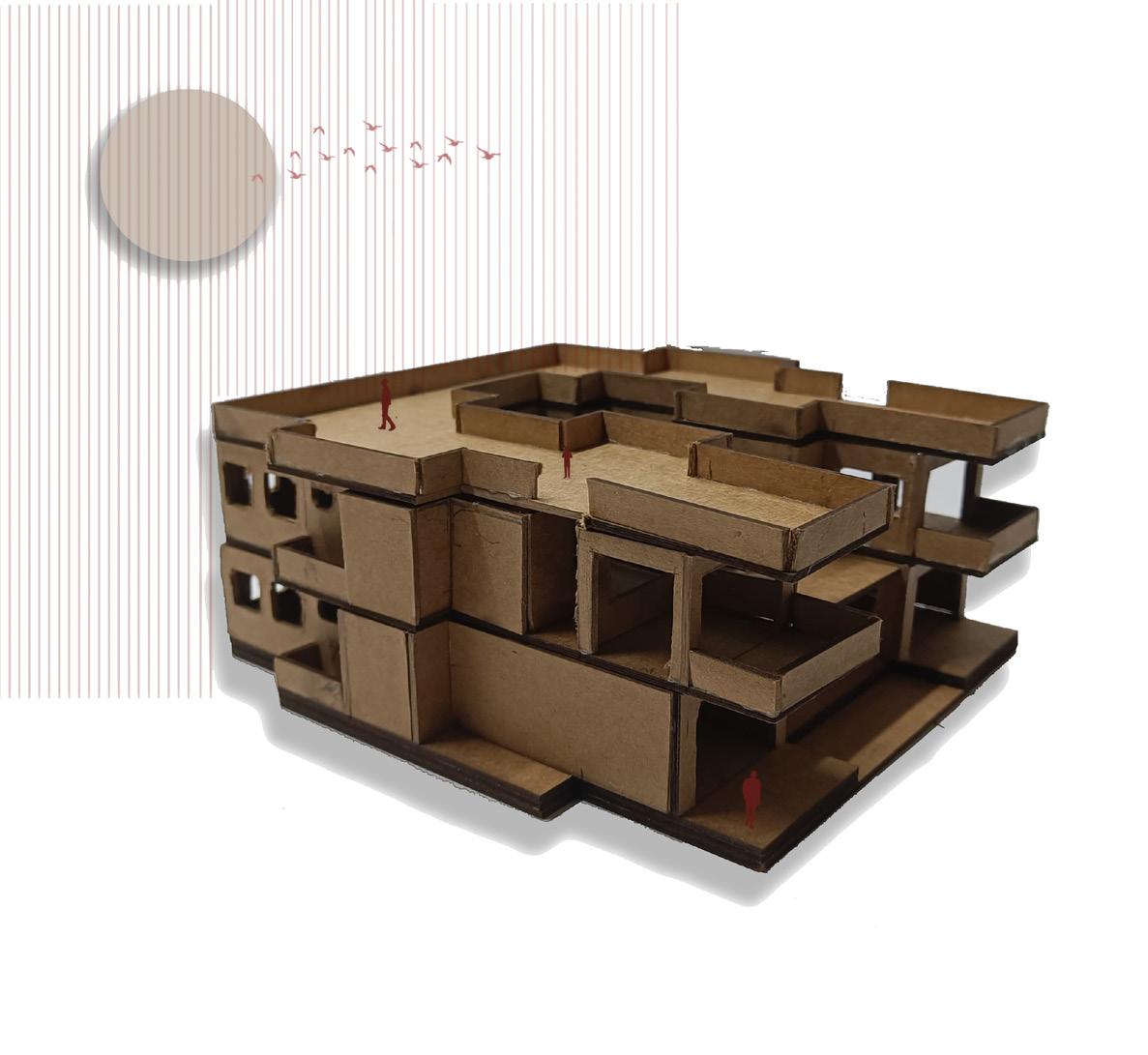 AFTER VISITING BHUJODI AS OUR SITE WE FOUND OUT THAT THE INTERACTION BETWEEN THE INDIVIDUAL COMMUNITIES LACKED, SO WE PROPOSED A LOW INCOME TYPE OF HOUSING CHOOSING AJRAKH, LEATHER AND BLOCK ARTISANS AND THEIR FAMILIES KEEPING IN MIND THE SENSE OF BELONGINGNESS , INTERACTIVE SPACES AND BRINGING THEM ALL TOGETHER BY CREATING A WORK + LIVE ENVIORMENT .