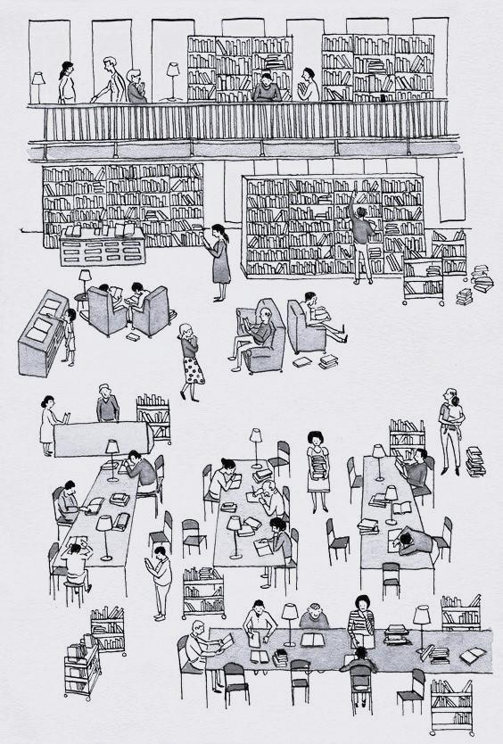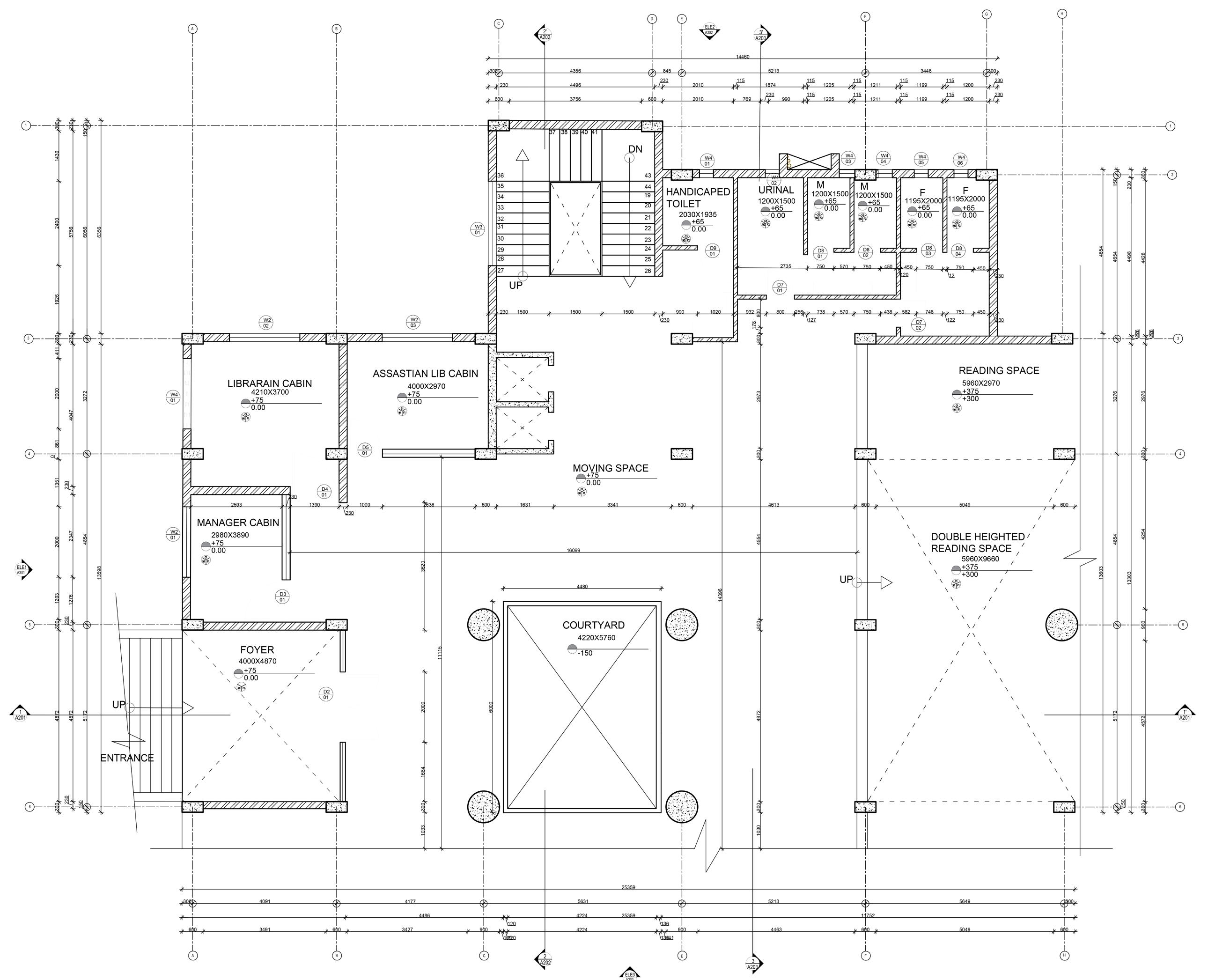 THE MAIN LIBRARY BLOCK IS CONSIDERED AS IT INCLUDES ALL THE SERVICES LIKE TOILET, PANTRY AND STAIRCASE , WHICH ARE DETAILED OUT.