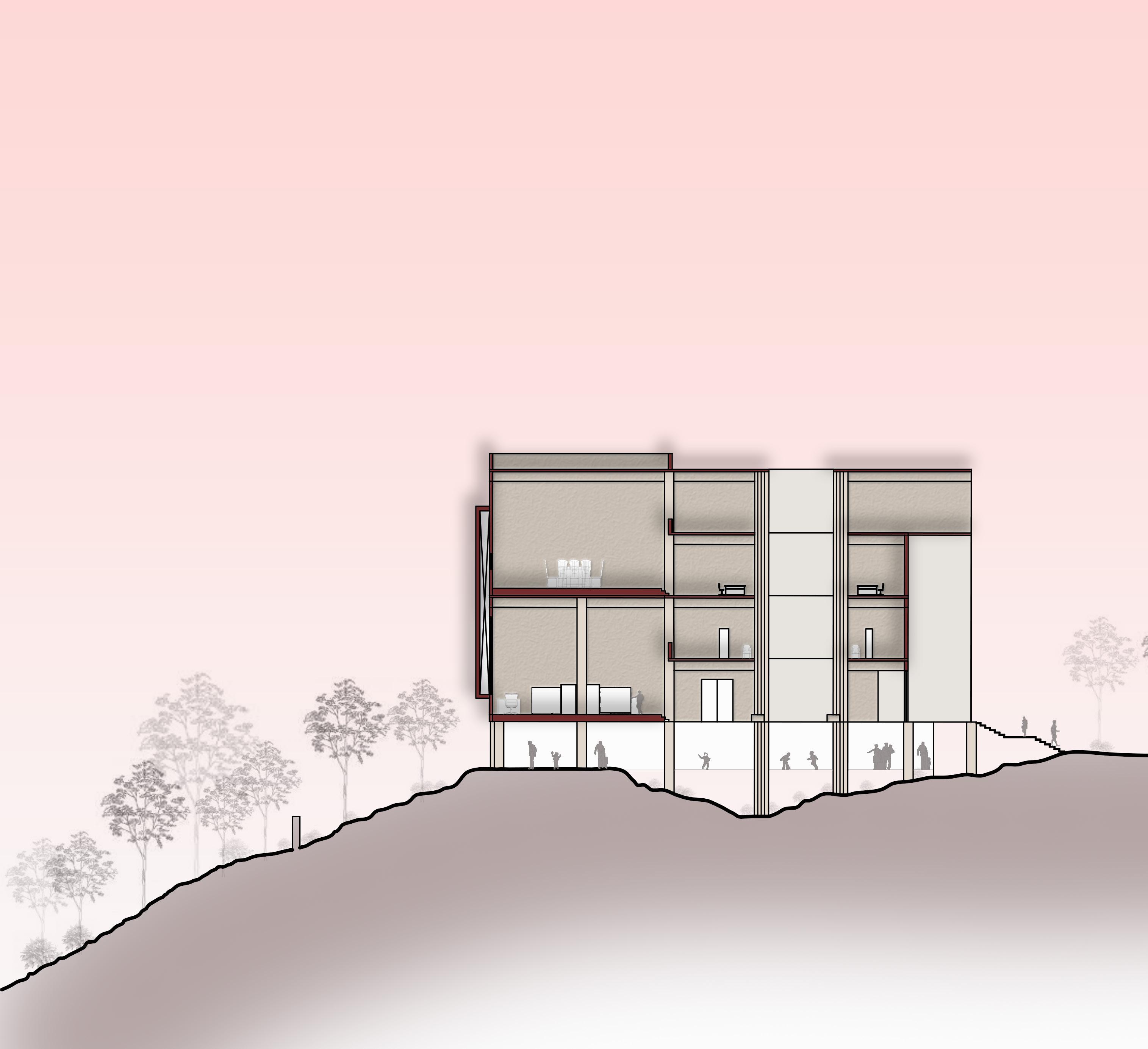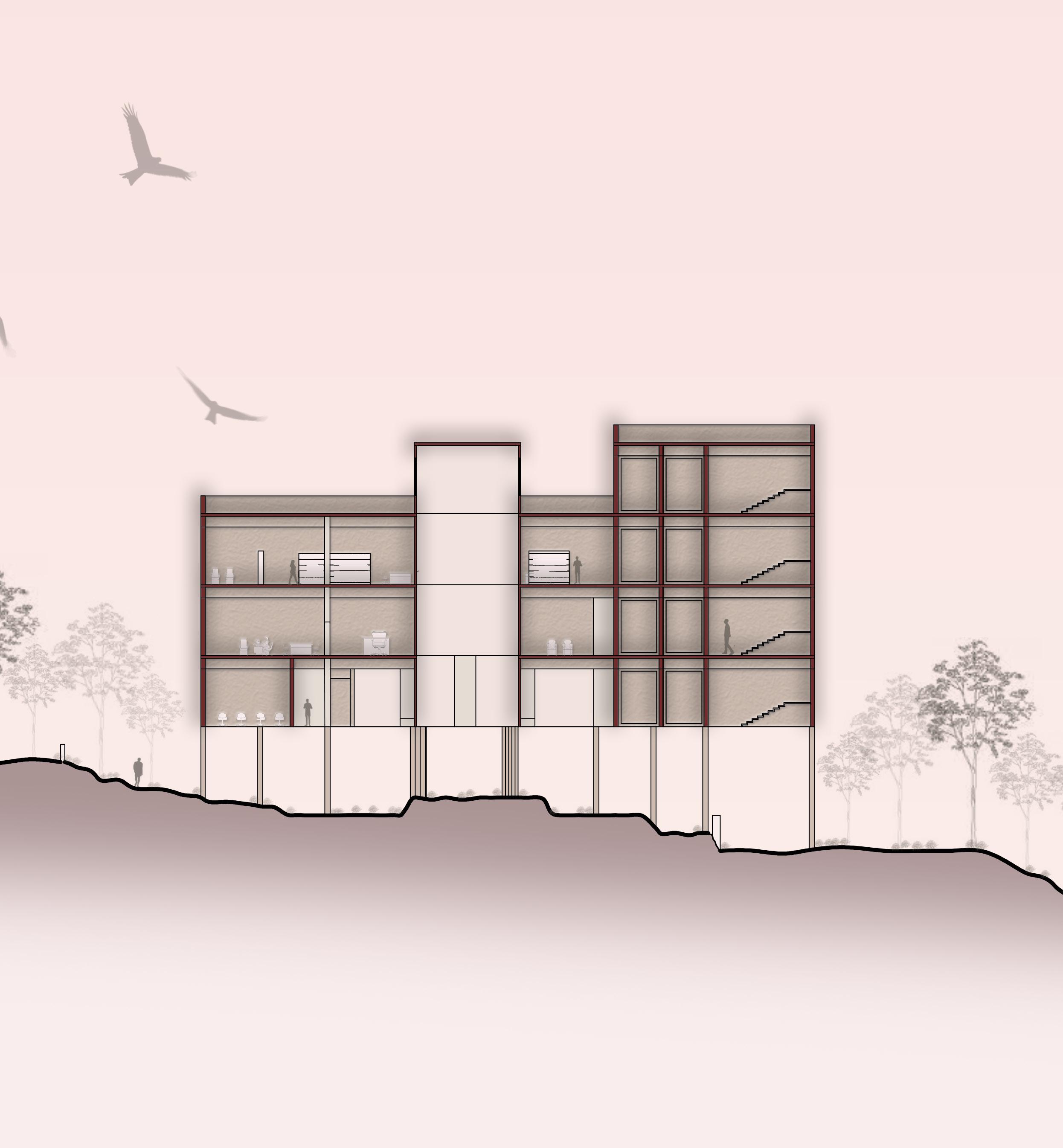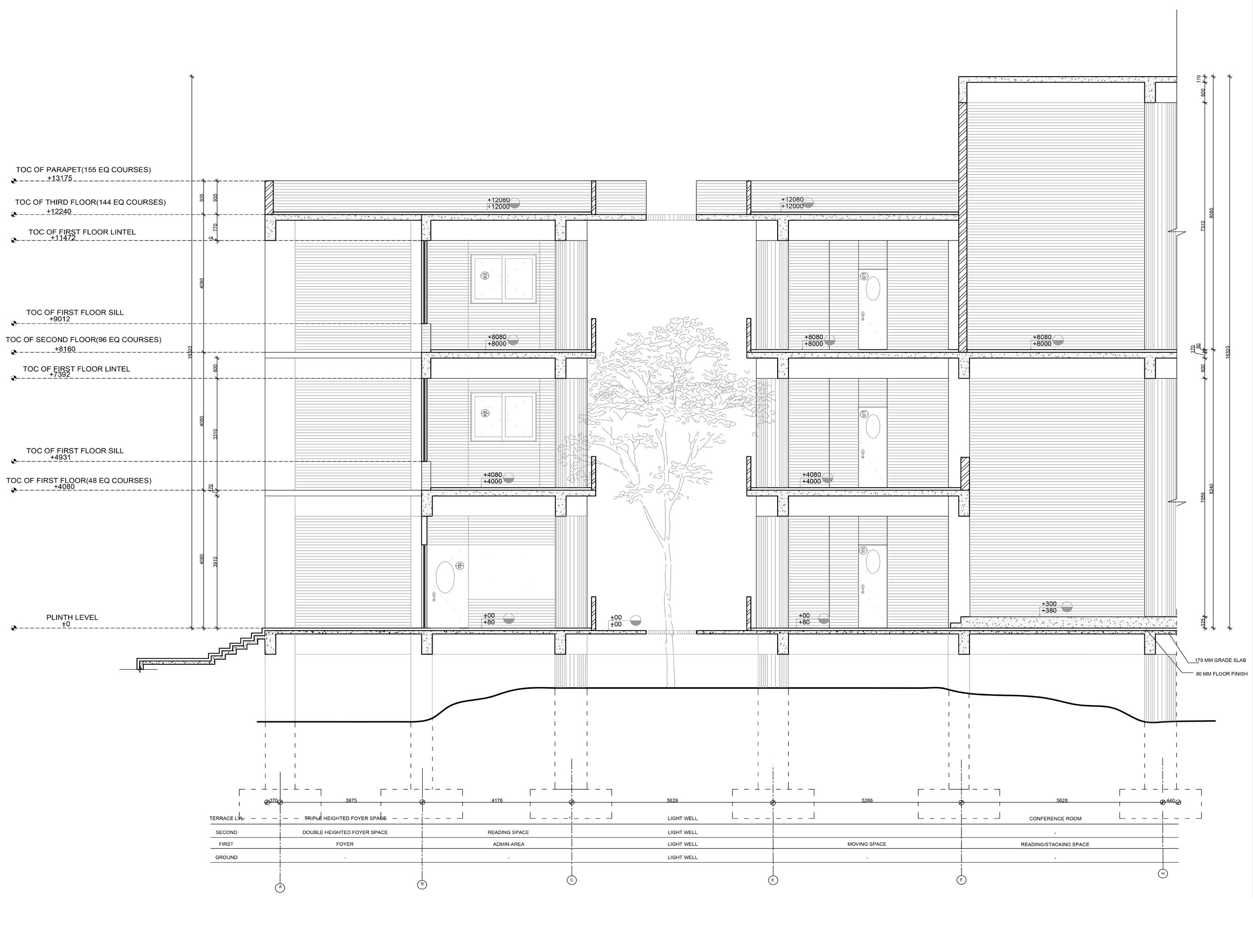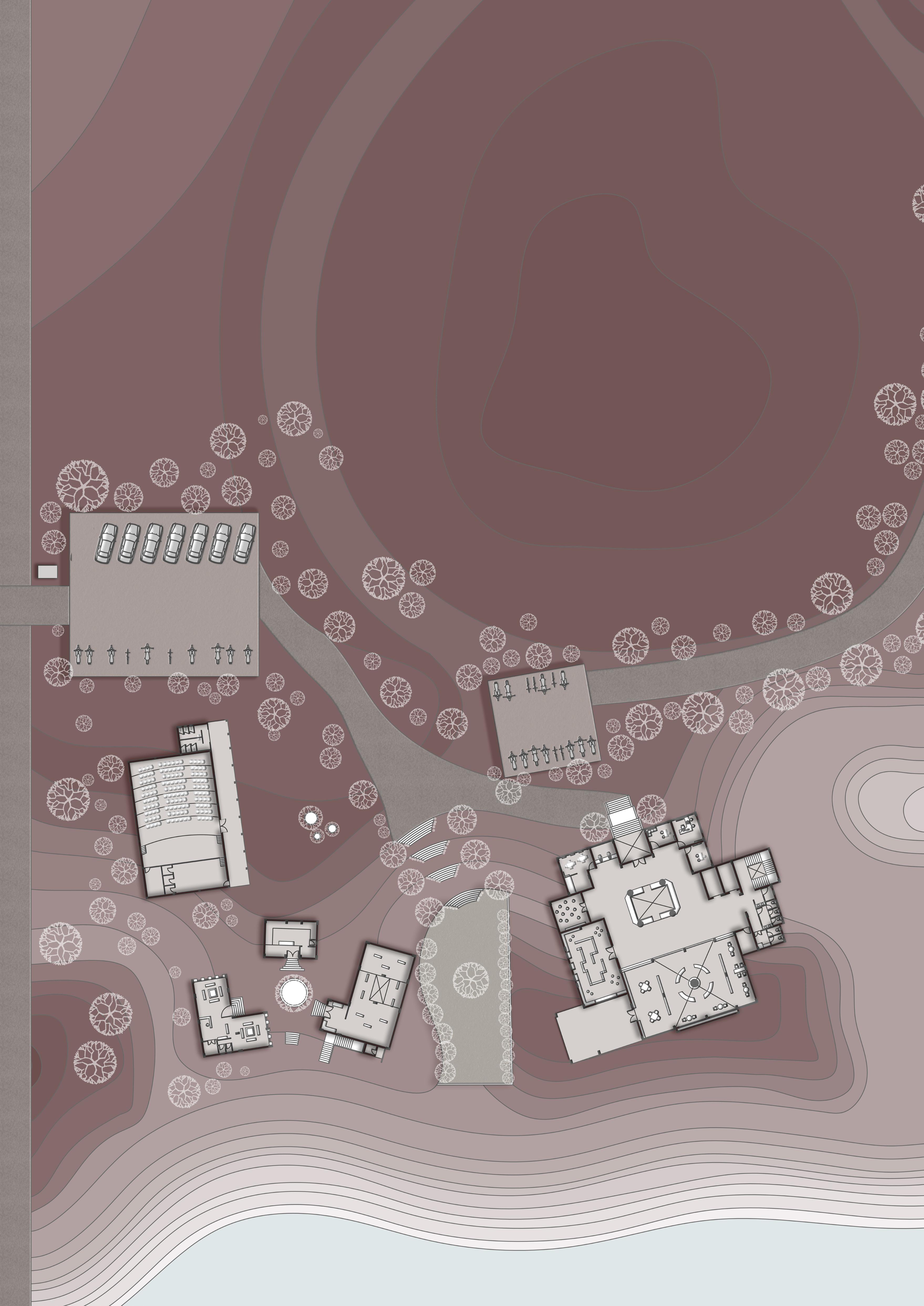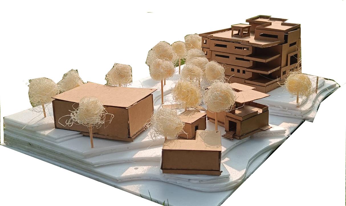 INSTITUTE BUILDING INCLUDE BRINGING A LARGE SCALE PLACE TOGETHER, SORTING OUT CIRCULATION THAT CONNECTS AND PLURALITY OF ITS FUNCTION .THE CHALLENGE FOR THIS STUDIO WAS TO DESIGN SPACE FOR BOOKS ; LIBRARY, IN AN UNDULATING LAND ,WHICH IS A PART OF AALLUVA HILLS, GANDHINAGAR, KEEPING THE ESSENCE OF THE GIVEN TERRAIN . SABARMATI WRIVER AS THE HEART OF THE SITE.