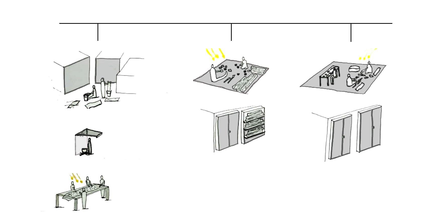 ARTISANS COMMON OPEN WASHING SPACE SEMIOPEN DYEING SPACE CLOSED PRINTING SPACE CLOSED WORKSPACE STORAGE SPACE CLOSED WORKSPACE STORAGE SPACE