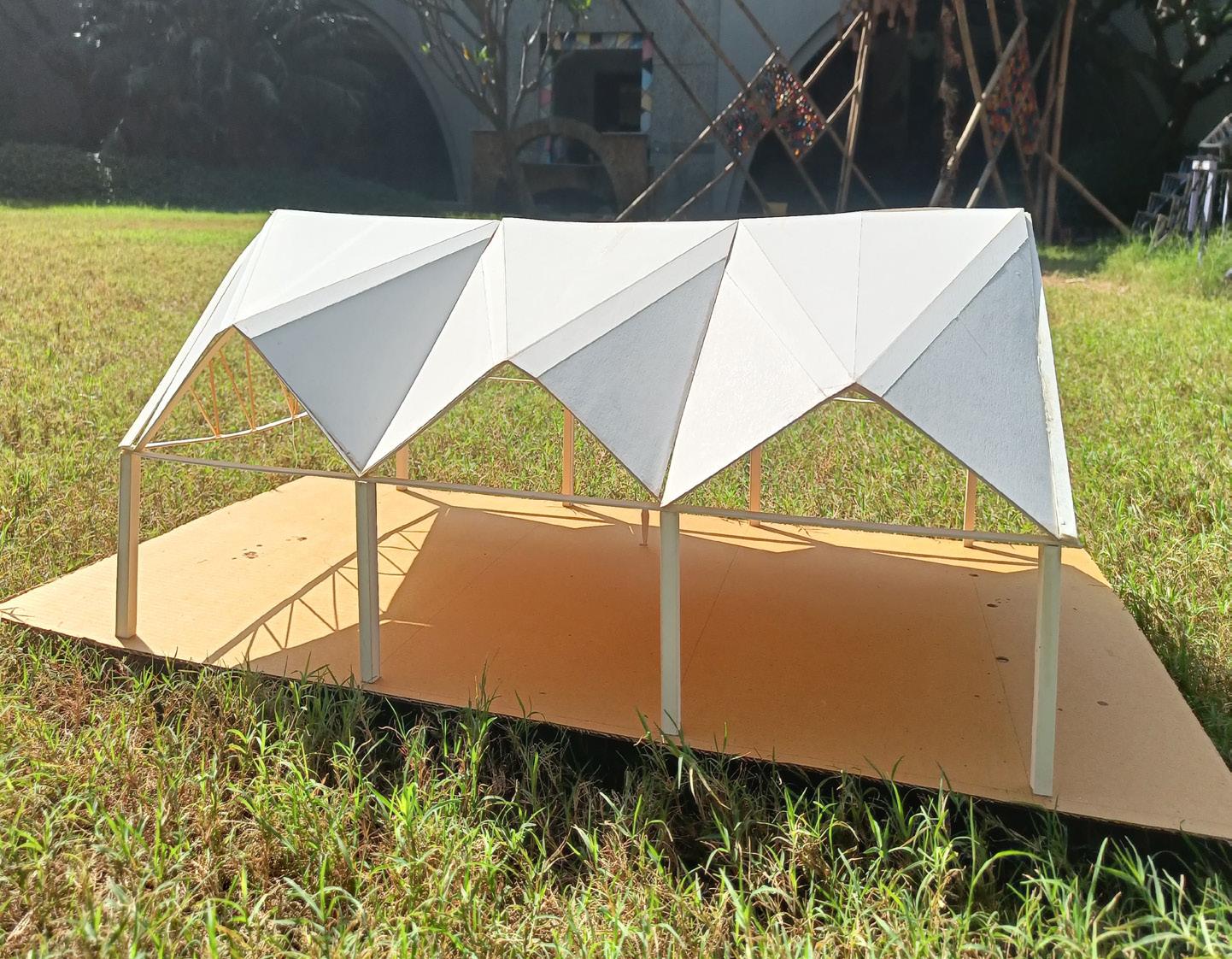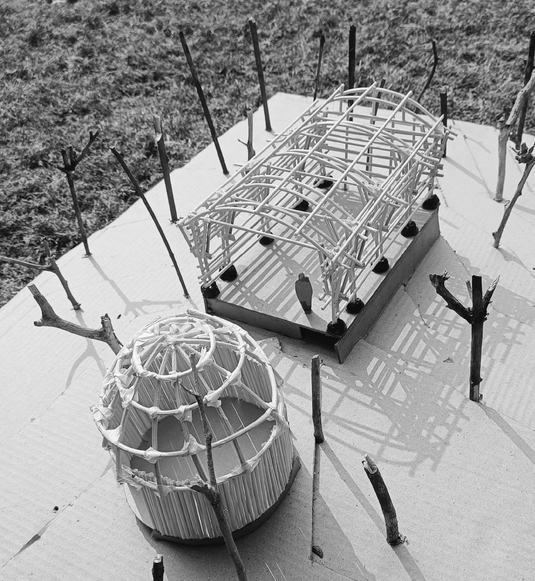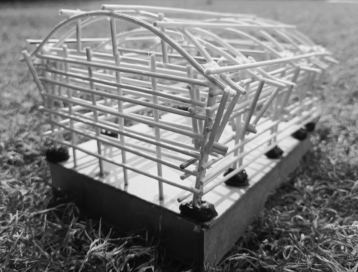 AFTER DOING MANY CASE STUDIES OF BAMBOO STRUCTURES AS WELL AS STUDYING VERNACUAR ARCHITECTURE OF SIKKIM, I CAME ACROSS THE MIXTURE OF FEW IDEAS AND TRIED INCORPORATING IT IN MY DESIGN, I TRIED TO TAKE THE MAXIMUM ADVANTAGE OF THE MATERIAL BY KNOWING IT’S FLEXIBILITY AND TENSILE STRENGTH AND CREATED A VAULT STRUCTURE FOR A SMALL FAMILY WHO ALSO RUNED A MEDITITION CENTRE NEARBY THEIR RESIDENCE , WHICH WAS WORKED OUT IN A BAMBOO DOME STRUCTURE.