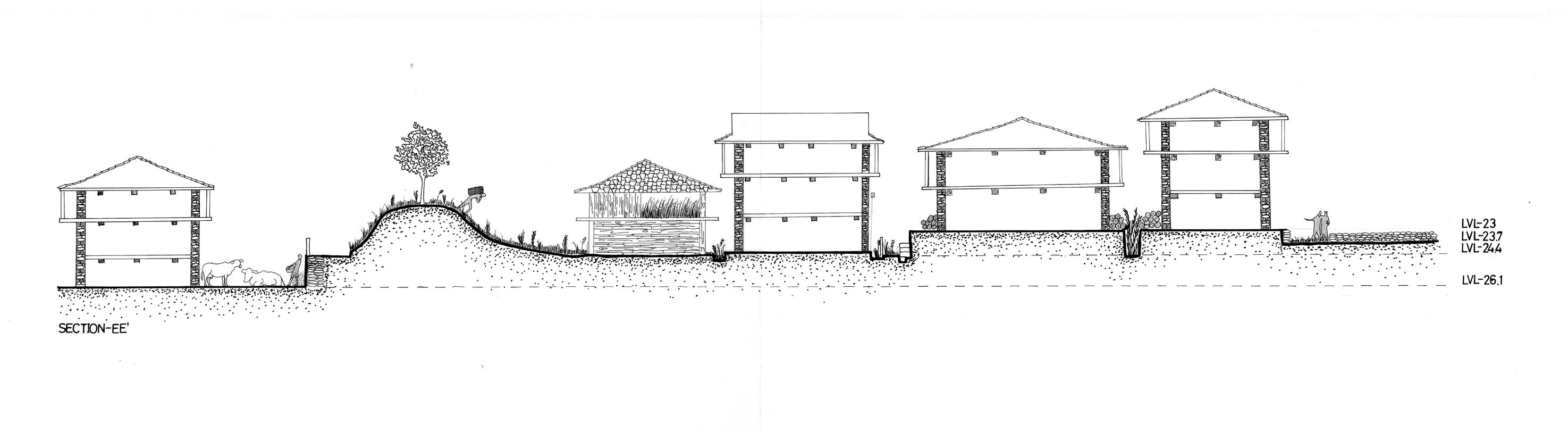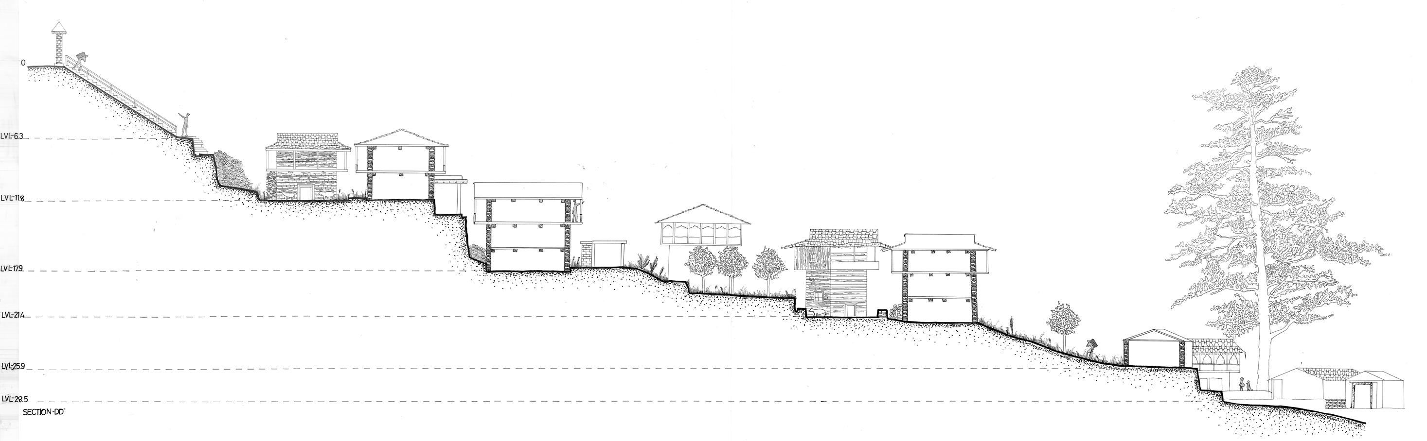 DRAWING - SHARAN, HIMACHAL PRADESH SITE PLAN LONGITUDINAL SECTION LATITUDINAL