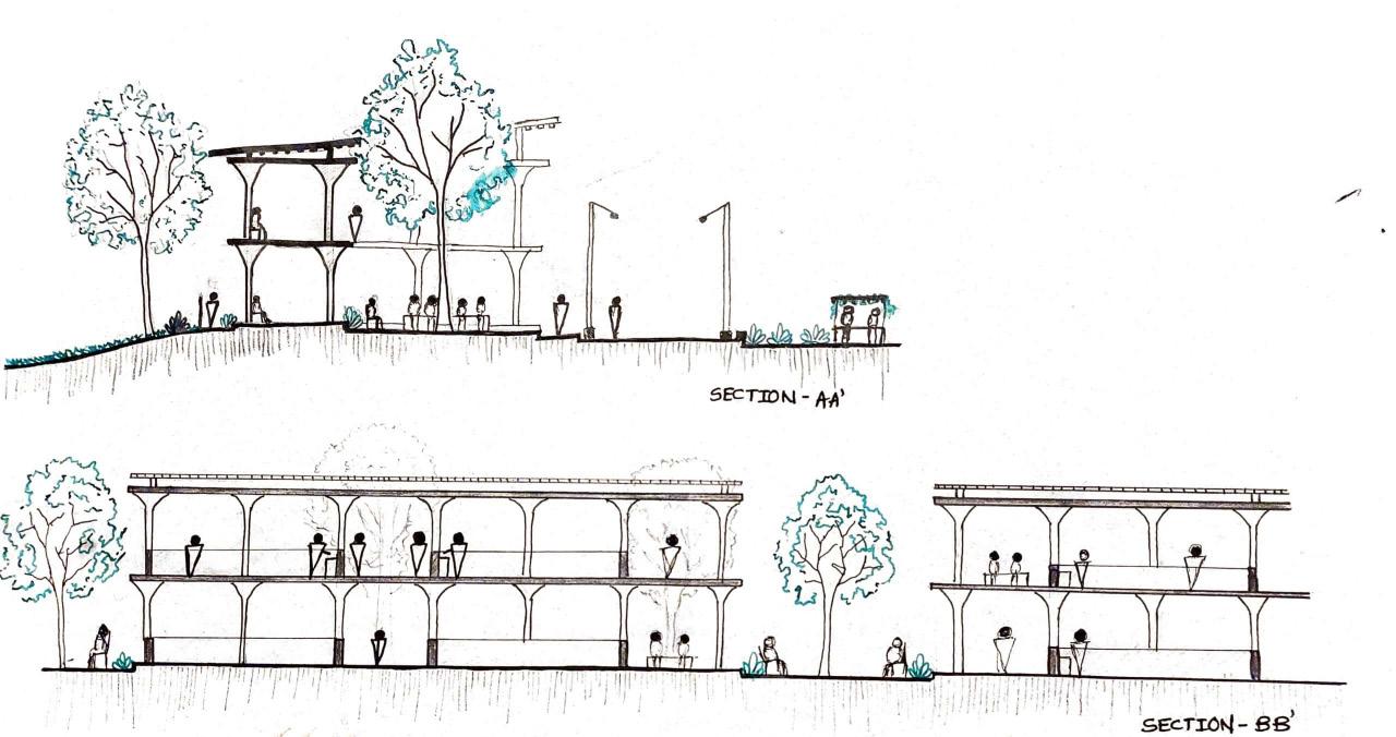 “MERGING TWO VERY DIFFERENT CHAPTERS IN A SINGLE BOOK”. AT THE REAR OF THE SITE WAS RAJPUR VILLAGE AND GANDHINNAGAR LOCATED AT THE FRONT. THUS MY CONCEPT WAS BRINGING THE VILLAGERS AND THE PEOPLE OF CITY TOGETHER IN A SINGLE SPACE BY KEEPING THE ESSENCE OF THE LAND PARCEL GIVEN AND THUS ACHIEVED A DESIGN WHICH FASCINATES THE READERS TO THE VASTNESS AND SERENITY OF THE LOCATION.