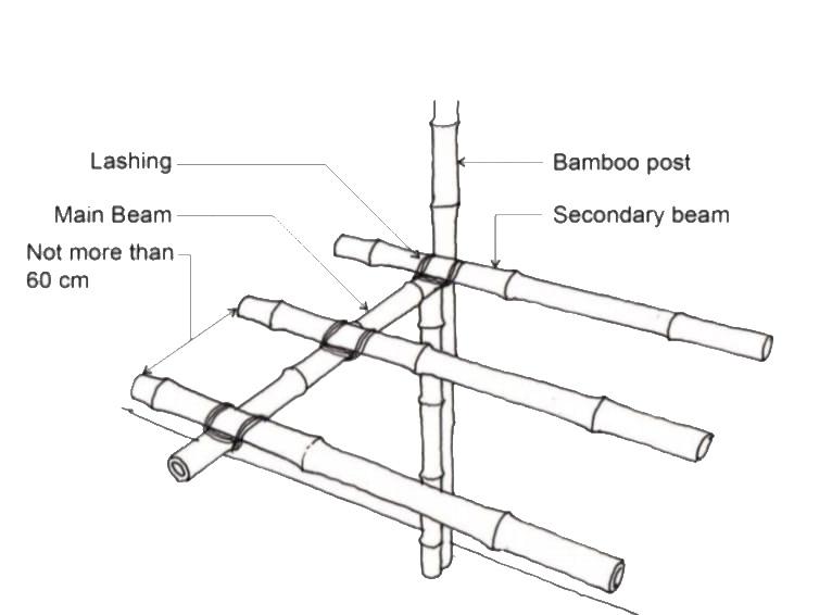 BAMBOO BEAM SPLIT BAMBOO CONCRETE AND STONE FOUNDATION