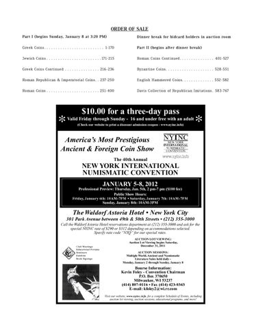 AUCTION SESSIONS: • Freeman & Sear: Tuesday, Jan. 4 Multiple World, andJan. Numismatic • Classical Numismatic Group: TuesdayAncient & Wednesday, 4-5 •• Baldwin's/M&M Numismatics/Dmitry Markov: The New Literature SalesSunday held daily Heritage World Coin Auctions: &York Monday, Jan. 2-3 on Wednesday & Thursday, Jan. 5-6 Monday, January 2 through Sunday, January Jan. 8 • Sale Giulio Bernardi S.R.L./Numismatik Lanz: Monday, 3 • Ponterio & Associates–A Division of Bowers & Merena: Friday • &Freeman & 7-8 Sear: Tuesday, Jan. 4 Saturday, Jan. •• Gemini Numismatic Auctions VI:Group: Sunday, Jan. 9 Classical Numismatic Tuesday & Wednesday, Jan. 4-5