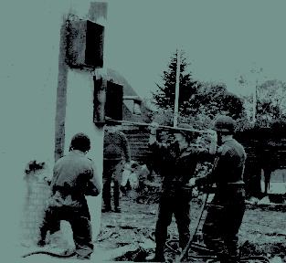 Delingen af hjemmeværnssoldater trænger ind i bygningen gennem et vindue. De sætter sig hurtigt på det mødelokale, de er kommet ind i, og fortsætter deres afsøgning af bygningen. Det øjeblik de møder en fjende, ændrer afsøgningen sig til rensning.