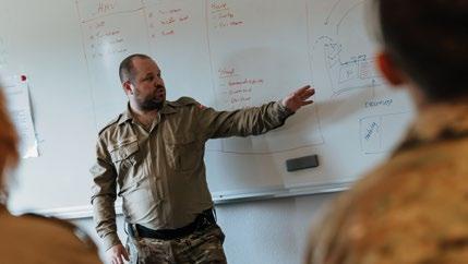 Vi trænede sammen med en gruppe dansk-ukrainere, der er ved at uddanne sig til tolke på Forsvarsakademiet, så de kan tolke for deres landsmænd, når de kommer hertil og skal uddanne sig som infanterister, artillerister og kamppiloter.