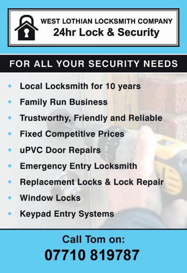 4 | BALERNO @KonectMagazines Be Safe, Stay Safe –use D. Sykes Electrical for all your electrical maintenance and repairs We are an Approved Certifier of Construction, certified to carry out work requiring a building warrant IT WORKS, BUT IS IT SAFE? DSYKES Electrical Contractors 0131 477 7447 info@dsykeselectrical.co.uk | www.dsykeselectrical.co.uk | 24 Bridge Road, Colinton EH13 0LQ 10% DISCOUNTon labour with this advert
