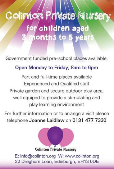 COLINTON LITERARY SOCIETY - Meetings start with coffee, tea and wine at 7.30pm and are held at Dreghorn Hall, 22 Dreghorn Loan, EH13 0DE. Full programme details are at www.colinton-parish. com/colinton-literary-society.html