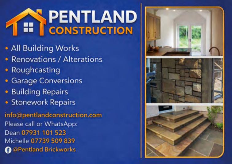 PENTLAND SINGERS COMMUNITY CHOIR - Rehearsals every Tuesday at 7.30pm in Balerno Parish Church. Singing a wide range of choral music, with local concerts twice a year, no previous experience required and new members always warmly welcomed. Actively seeking new members. Further information: W: www.pentlandsingers.org.uk E: pentland_singers@yahoo. co.uk