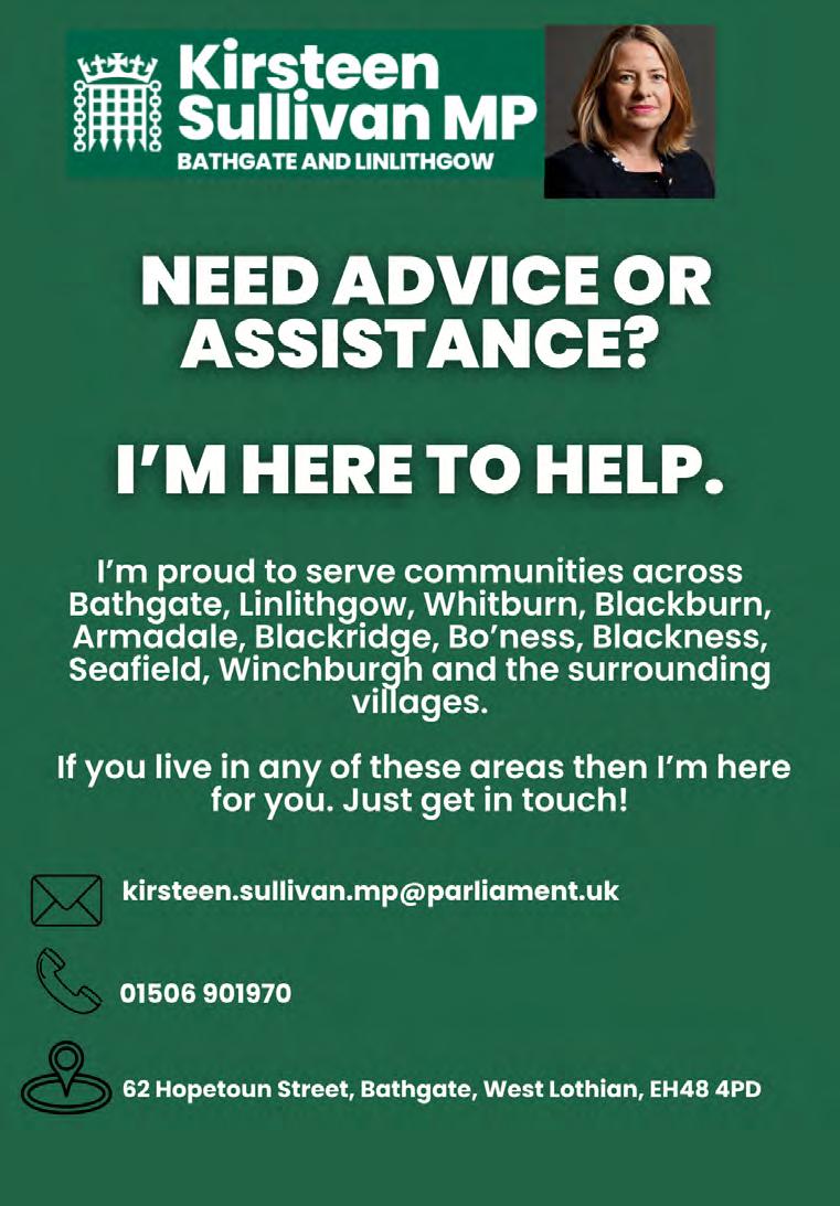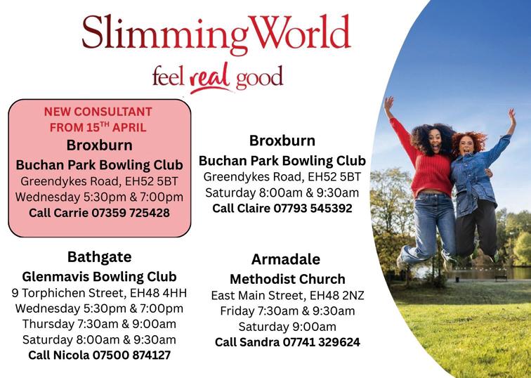 BATHGATE BELLES SWI - We meet on the last Wednesday of each month from 7-9pm in The Royal British Legion, 50 North Bridge Street, Bathgate. Our aim is to empower women through friendship, reducing isolation and fostering a sense of community. We offer lifelong learning opportunities by having talks, trips out and demonstrations and promote wellbeing by having lots of fun. For more information email at bathgatebelles@ outlook.com or just come along.