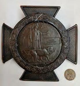 I hope you all enjoyed our little jaunt down Jarvey Street in the last issue. As promised, we now turn our attention to the “Death Penny,” a memorial plaque which was issued to the next of kin of all British Empire service recruits who died overseas.