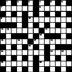 DOWN: 1. Horrendous (6), 2. Refute (4), 3. Childhood illness (7), 4. Investigate (5), 5. Barely (8), 6. Coerced (6), 12. Engaged (8), 14. Stopping place (7), 16. Gun or knife (6), 18. Bowed (6), 19. Nearby (5), 21. Pinnacle (4).