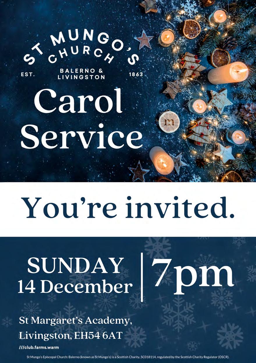 Christmas Concert: Toccata Ladies Choir - Livingston United Parish Church, Carmondean. 6.30pm. Tickets £10/£5 on the door or from choir members. www.toccataladieschoir.co.uk
