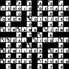 ACROSS: 7. Type of fruit (6), 8. Opulence (6), 9. Touch (4), 10. Start (8), 11. Modified (7), 13. Impede (5), 15. Remove from home (5), 17. Water closets (7), 20. Calculation (8), 21. Horrid (4), 23. Male relatives (6), 24. Snub (6). DOWN: 1. Manufactured (4), 2. Horse’s fastest pace (6), 3. Observed (7), 4. Chubby (5), 5. Specialist (6), 6. Piece of jewellery (8), 12. Splitting (8), 14. Advisory group (7), 16. Cold (6), 18. Caring (6), 19. Slightly drunk (5), 22. Lie in wait (4).